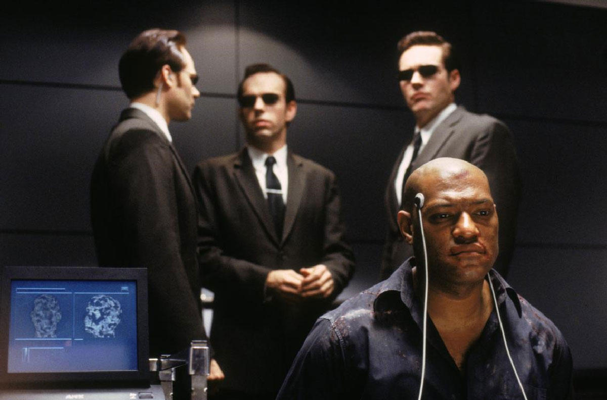 Il va sans dire également que Matrix est, depuis vingt ans, un des films ayant été le plus profondément étudié, analysé et décortiqué. On a donc déjà dit cent fois que le film s’impose comme une relecture cyberpunk de l’allégorie de la caverne de Platon. Ce dernier imaginait une poignée d’hommes (la société), enchaînés et immobilisés dans une caverne. Etant donné qu’ils sont enchaînés dos à l’entrée de la caverne, ils ne voient non pas des objets, mais l’ombre de ces objets, projetée contre le mur : ainsi, Platon démontre que s’ils croient voir la vérité, ils n’en voient en réalité qu’une apparence. Le discours de Matrix est le même : le film soutient la thèse selon laquelle la société de consommation et le train-train métro-boulot-dodo n’est qu’une illusion, asservissant les hommes par le biais des écrans, de la publicité, de l’illusion de la réussite matérielle, les réduisant presque à l’état de rats de laboratoire. Quelques années avant l’avènement des réseaux sociaux qui marquerait le premier signe de la fin des temps, Matrix appelait déjà son public à se réveiller (« Wake up, Neo ») et plus largement à se « déconnecter » de ce mode de vie.