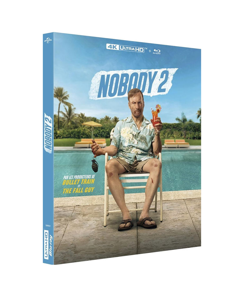 L’édition Blu-ray 4K Ultra HD de Nobody 2, éditée par Universal Pictures, arrive dans un packaging qui mérite le détour. Disponible en édition standard et en boîtier SteelBook limité, le disque propose une image sublime, étalonnée en HDR10 et Dolby Vision. Le rendu visuel est impressionnant : les contrastes nocturnes gagnent en profondeur, les explosions s’illuminent avec une intensité presque hypnotique, et les visages fatigués de Bob Odenkirk révèlent chaque ride, chaque goutte de sueur. Les séquences d’action, souvent tournées dans des environnements sombres, profitent pleinement de la dynamique étendue, offrant une lisibilité exemplaire. Quelques plans paraissent légèrement granuleux, mais ce grain participe à l’esthétique rugueuse du film, loin du lissage artificiel de certains blockbusters. Côté son, Universal nous propose une VO en Dolby Atmos et une VF en Dolby Digital+ 7.1. La version originale est une véritable claque : les balles fusent dans toutes les directions, les explosions secouent le salon, et la musique, parfois volontairement kitsch, enveloppe l’espace avec une ampleur spectaculaire. La version française est également très spectaculaire, mais s’avère probablement un poil moins immersive que sa grande sœur : les dialogues manquent parfois de clarté, et les effets surround paraissent plus timides. Les amateurs de VO profiteront donc d’une expérience sonore nettement supérieure, mais la VF assure tout de même un confort appréciable pour ceux qui privilégient la langue française.