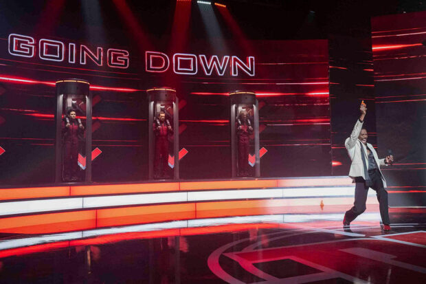 L’univers de Running Man s’étend cette fois bien au-delà des couloirs étriqués du film de Paul Michael Glaser. Aidé par un budget confortable, Edgar Wright et son équipe déploient une ville tentaculaire, saturée d’écrans, de publicités, de flux toxiques, comme si la société entière avait fusionné avec TikTok, Hunger Games et une émission de télé-réalité animée par un algorithme défoncé à la coke. Le film joue avec cette esthétique rétro-futuriste, faisant de la ville une tumeur luminescente, mélangeant néons sales, architecture brutaliste et gadgets technologiques qui semblent avoir été conçus par un designer qui aurait sniffé un modem 56k. Mais cette ambiance visuelle n’est pas qu’un décor : elle traduit la thématique centrale du film, celle d’un monde où la surveillance est devenue un sport national et où la souffrance est, finalement, un divertissement comme un autre.