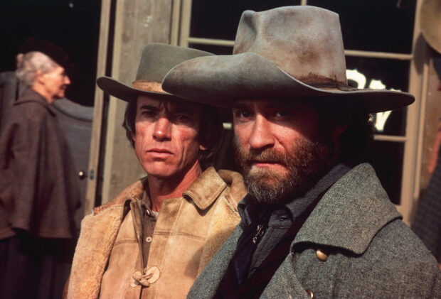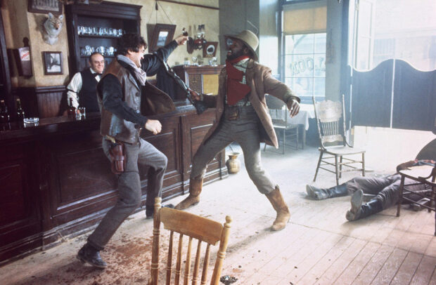 Formellement, Silverado envoie du bois. Lawrence Kasdan filme les grands espaces avec une gourmandise, voire même une concupiscence qui frôle l’indécence. Les plans larges sont à tomber, les couchers de soleil feraient pleurer un influenceur Instagram, et les scènes d’action sont chorégraphiées avec une précision remarquable. La musique de Bruce Broughton, toute en cuivres héroïques et en envolées lyriques, donne à Silverado une ampleur quasi mythologique. On est loin du western crépusculaire à la Peckinpah : ici, la lumière est crue, les couleurs claquent, et même les balles semblent sortir d’un feu d’artifice. Et puis, il y a cette scène dans Silverado où les quatre compères, après avoir été séparés, se retrouvent dans un plan large. La caméra recule, les chevals hennissent, les regards se croisent, et on comprend que le western, ce n’est pas qu’une affaire de flingues et de chapeaux. C’est une affaire de mise en scène, de rythme, de souffle. Et là-dessus, Silverado assure comme un chaton sur un trampoline. Oui, c’est parfois un peu trop propre, un peu trop bien peigné pour un genre qui sent normalement la sueur et le whisky frelaté. Mais bon sang, quel plaisir de voir un film qui croit encore à la magie du cinéma, à la puissance du cadre, au pouvoir d’un bon vieux travelling latéral. Silverado nous rappelle que le western ne meurt jamais. C’est juste un genre qui dort, comme un vieux cow-boy dans un rocking-chair, prêt à dégainer dès qu’un réalisateur un peu couillu (ou un peu inconscient) décide de le réveiller. Et si aujourd’hui, entre deux recherches Google sur « iPhone 17 Pro Max » et « comment faire un risotto sans riz », on se pose la question de ce qu’est un bon film d’aventure, Silverado vous apportera la réponse tant attendue. Parce qu’il a ce truc rare : il donne envie de croire à nouveau aux grands espaces, aux causes perdues, et aux types qui tirent droit, même quand tout le monde leur dit de baisser les yeux.