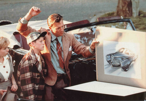 Et puis bien sûr, Preston Tucker, c’est aussi une projection de Coppola lui-même : en 1988, le cinéaste, qui sortait de grosses déconvenues financières, voyait forcément dans cette histoire un reflet de sa propre lutte pour l’indépendance artistique. Le film devient alors une métaphore de Zoetrope Studios : une petite voiture face aux tanks hollywoodiens. Et Tucker – L’homme et son rêve nous montre bien que quand plus rien ne va d’un point de vue professionnel, le seul refuge, c’est la famille. On connait l’importance de la famille pour Coppola – dans le film, elle fait office de carburant émotionnel, de station-service où Tucker recharge ses batteries. De l’huile pour ses injecteurs. Du lave-glace pour son pare-brise, quand dehors il fait -5. Bon OK, on arrête là pour les métaphores mécaniques.