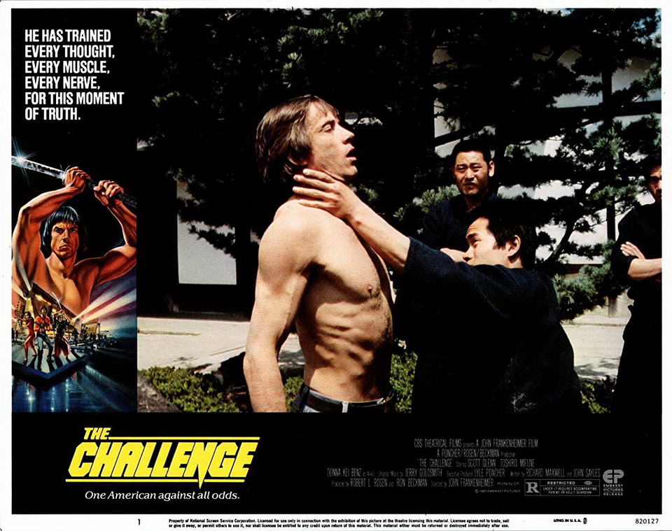 Si les films de la trilogie Ninja s’apprécient surtout pour leur côté foutraque et bigger than life, le film de Frankenheimer n’est pas de ce bois-là : point de second degré à l’horizon ici, il ne sera pas question, presque quarante après, de se gausser du côté too much et suranné de l’ensemble : À armes égales conserve un cachet technique solide, lui permettant de rester sur les rails d’un premier degré imperturbable, et la réalisation énergique déployée par John Frankenheimer n’incitera en aucun cas à la moquerie. Développant un récit d’initiation très classique, les scénaristes Ivan Moffat et John Sayles prennent le temps de plonger leur personnage -ainsi que le spectateur- au cœur des us et coutumes d’une école d’arts martiaux japonais spécialisée dans le maniement du sabre, et guidée par le charismatique Yoshida (Toshiro Mifune, mâchoires et poings serrés – plus badass que jamais). De fait, le film prend son temps, ne sacrifiant pas son récit sur l’autel de l’action. L’immersion au cœur du film se fait d’autant plus facilement que le héros incarné par Scott Glenn est finalement proche du « Mr Tout le monde » : boxeur raté, probablement vétéran du Vietnam, il s’insurge notamment contre la montée en puissance de la violence pour de simples questions d’honneur. Durant tout le film, le personnage s’en prend d’ailleurs littéralement « plein la gueule », terminant sa trajectoire tel un mort vivant, brisé et ruisselant de sang.