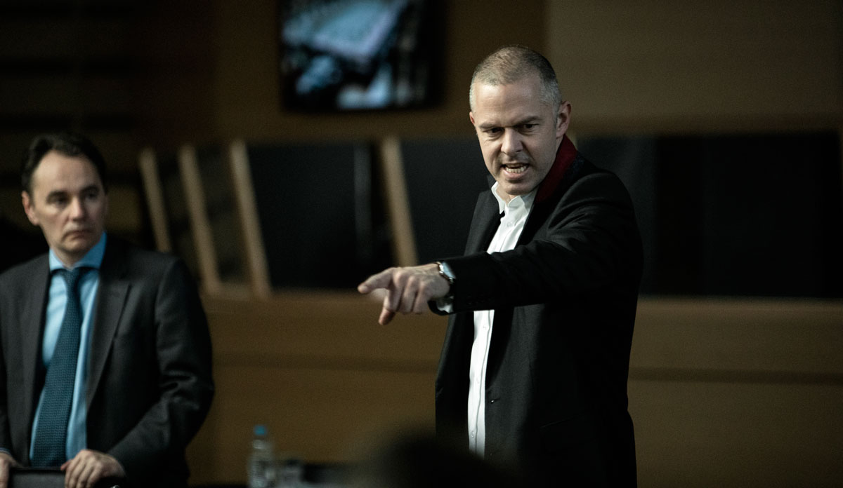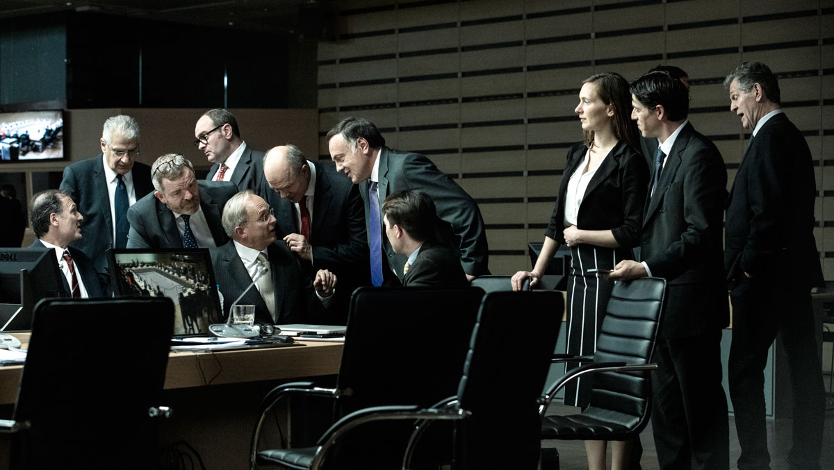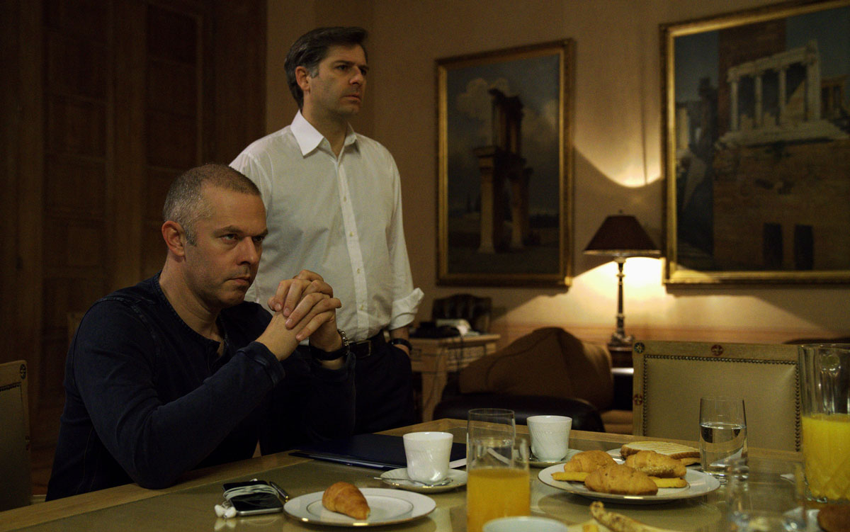 Décortiquée depuis l’intérieur, cette situation, qui remonte à pas si longtemps et qui est appelée à se répéter, tant que la stabilité financière de la Grèce ne sera pas assurée par autre chose qu’un catalogue de restrictions étouffantes, a donc tout d’un cauchemar. Dans ses moments les plus virtuoses, la mise en scène a par ailleurs recours à un vocabulaire onirique. La première fois lors des débuts de Varoufakis devant le conseil intraitable de la Banque Centrale Européenne, avec ces chiffres qui virevoltent au-dessus du cercle infernal des fonctionnaires, une illustration sublime du maelstrom de sommes mirobolantes que plus personne ne veut, ni ne peut concevoir et encore moins payer. Puis, beaucoup plus tard dans le film, qui n’est malgré tout pas complètement exempt de maladresses formelles, comme par exemple l’emploi de la voix off du protagoniste insistant trop sur ce point de vue à la fois privilégié et subjectif, le beau château de cartes des méprises et des coups bas stratégiques s’écroule au détour d’une danse enchantée. Dans les couloirs déserts du centre névralgique de l’Europe à Bruxelles, Alexis Tsipras dans sa réincarnation fictive se perd pour mieux se retrouver, entouré des autres dirigeants au cours d’un ballet, qui symbolise assez ingénieusement à quel point ces chefs d’État doivent marcher sur des œufs pour maintenir les apparences d’une cohésion, censée rassurer et les banques, et le contribuable. Si vous vous souvenez des conséquences du référendum sur l’application des souhaits de la Troïka, il ne vous surprendra pas d’apprendre que le film ne se termine pas tout à fait sur ce moment de grâce cinématographique, mais sur des indications par voie de texte quant à l’issue déprimante des négociations, après tant de démarches de bonne volonté.