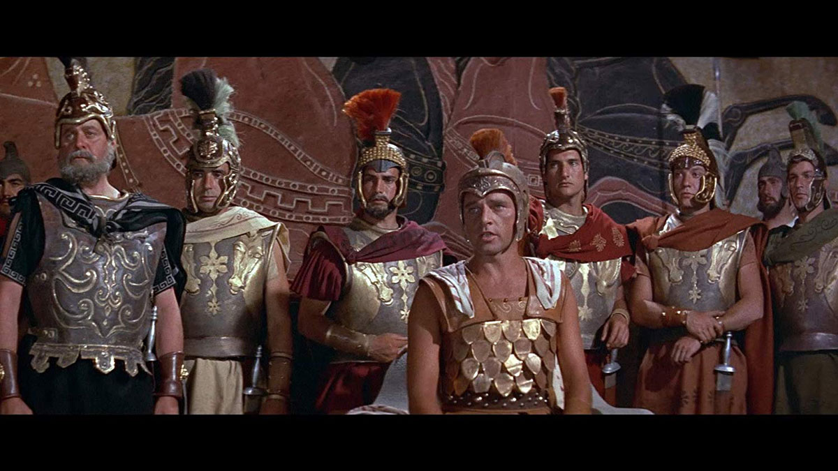 Sorti sur les écrans en 1956, Alexandre le Grand version Robert Rossen n’a quant à lui connu qu’un seul et unique montage. « La honte ! » nous souffle Oliver Stone, hilare. Evidemment, tournés à presque 50 ans d’écart, les deux films n’ont absolument rien à voir l’un avec l’autre. Richard Burton y incarne Alexandre, et révélera rapidement un parfait mélange de force et de vulnérabilité, qui s’exprimera surtout à l’écran lorsque les intrigues entreront en jeu. La première moitié du film abordera la vie de famille – pour le moins dysfonctionnelle ! – d’Alexandre, tandis que la seconde moitié se décidera – enfin ! – à nous dépeindre ses exploits en tant que « Conquérant », tout en continuant bien sûr à approfondir ses relations avec ses parents, Olympias (Danielle Darrieux) et Philippe (Frederic March), du moins jusqu’à ce que les stratagèmes d’Olympias retirent Philippe du tableau – au sens propre comme au figuré.