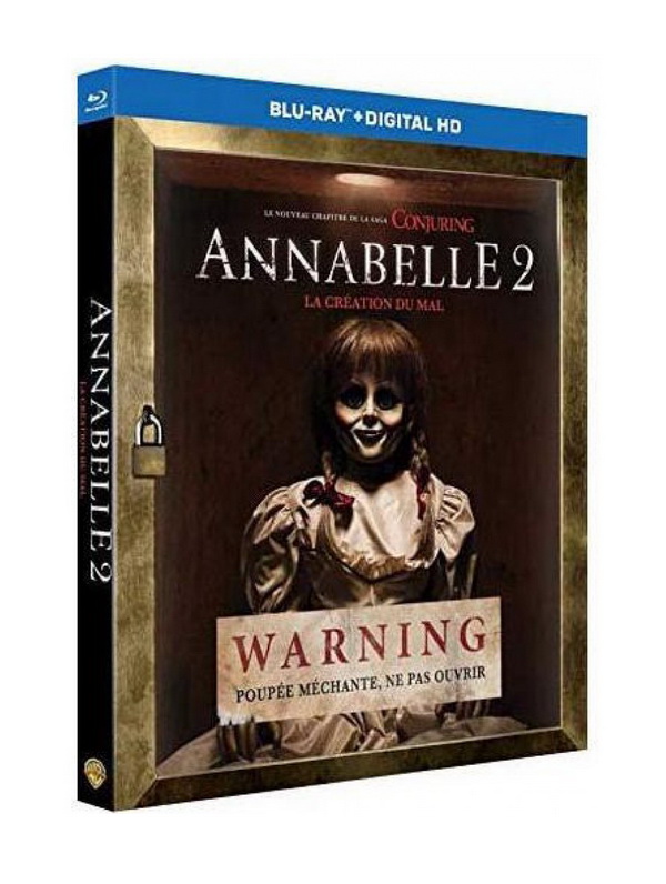 Côté Blu-ray, la galette d’Annabelle 2 : La création du mal éditée par Warner bros. est un véritable régal pour les mirettes comme à son habitude, l’éditeur nous offre une présentation optimale : les séquences de jour affichent un piqué redoutable, des couleurs naturelles et un niveau de détail assez époustouflant, et les (nombreux) passages nocturnes s’avèrent également convaincants en diable : les noirs sont profonds, on ne constate aucune baisse du niveau de détail, la précision est toujours de mise. C’est parfait. Niveau son, la VO est proposée dans un très impressionnant mixage Dolby Atmos (qui sera décodé en Dolby TrueHD 7.1 sur les amplis non compatibles), proposant une immersion excellente au cœur du film, une spatialisation de fou furieux jouant la carte de l’ambiance, et surtout des « jump scares » tonitruants qui vous feront à coup sûr sauter au plafond. Le mixage de la VF est quant à lui proposé en Dolby Digital 5.1, et s’avère naturellement un poil en retrait par rapport à sa grande sœur, même s’il est également très efficace sur les effets de surprise, en y allant franchement et de façon bien bourrine pour vous faire sursauter.