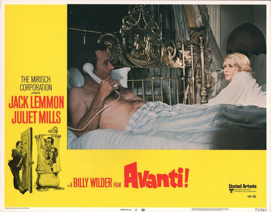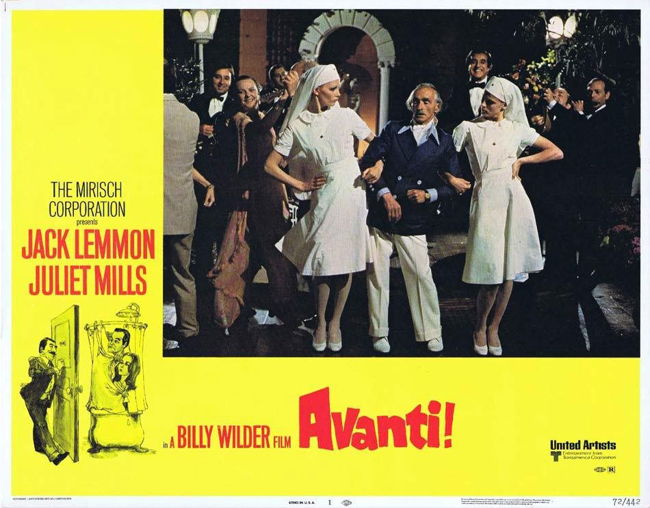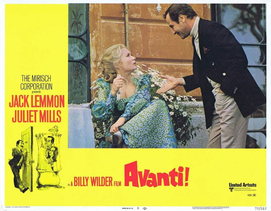 Car Avanti ! est un film bicéphale : mi-comédie de mœurs narrant les démêlés d’un américain en galère administrative dans un pays d’Europe, mi-comédie romantique suivant le rapprochement de deux êtres que tout oppose à priori – l’homme d’affaires arrogant, sûr de lui jusqu’à l’agressivité et la jeune femme positive, peu sûre d’elle mais lumineuse. Tout a été dit sur Avanti !… Mais on ne se lassera jamais de rappeler à quel point les personnages campés par Jack Lemmon et la discrète Juliet Mills (qui trouvait ici le rôle de sa vie) sont brillants, attachants et formidables. Et que dire que Clive Revill dans la peau du directeur de l’hôtel, sinon que sa performance est immense !