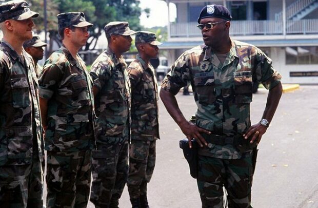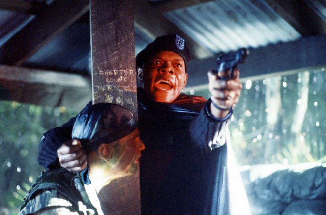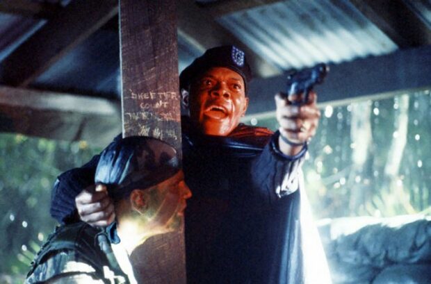 La dynamique entre les personnages de Basic est un autre point fort. Travolta et Connie Nielsen, qui incarne la capitaine Julia Osborne, jouent au chat et à la souris avec une tension sexuelle à peine dissimulée. On sent que McTiernan aurait aimé glisser une scène de douche, mais bon, tout le budget est probablement passé dans les palmiers. Samuel L. Jackson, en sergent West, est une figure d’autorité ambiguë, presque mythologique, dont la présence hante le récit comme une flatulence dans un ascenseur. Et si certains dialogues très artificiels semblent avoir été écrits par un stagiaire sous Lexomil, ils participent à cette ambiance de faux-semblants, où chaque mot peut être une bombe à retardement. Basic ne cherche pas à plaire, il cherche à déranger, à provoquer, à faire réfléchir – même si c’est entre deux scènes où Travolta fait des grimaces.