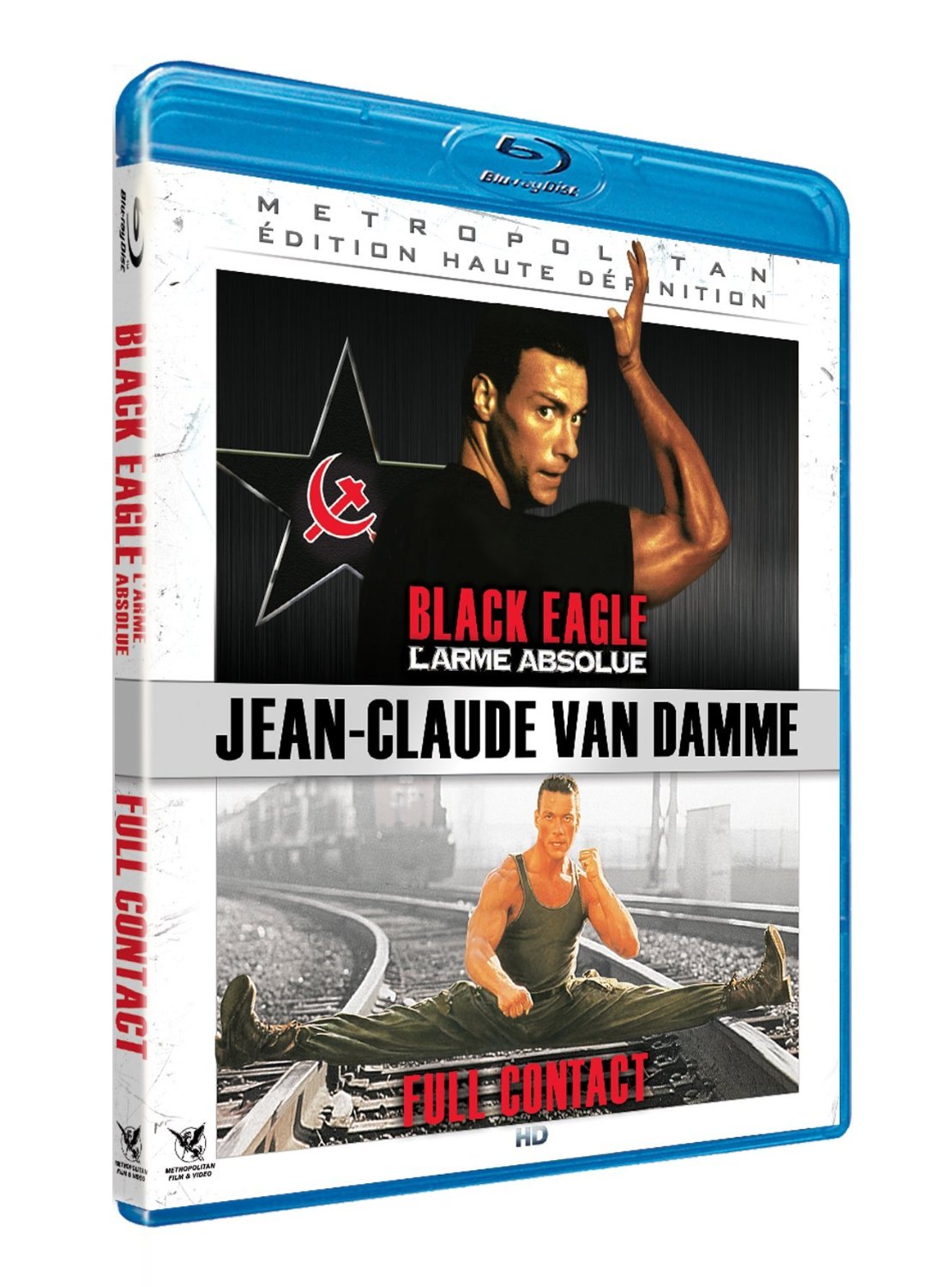 La filmographie de Jean-Claude Van Damme, tout comme celle de certains autres « musclés » des années 80/90, n’est pas forcément très bien représentée sur support Blu-ray. Grâces soient donc rendues à Metropolitan Vidéo, qui se décide enfin à proposer aux cinéphiles les débuts de la carrière du karatéka belge en Haute Définition. La première livraison se fera donc sous la forme de deux galettes Blu-ray, contenant chacune deux films de JCVD. Le premier « pack » contient Black eagle – L’arme absolue (1988) et Full contact (1990), tandis que le second regroupe Le grand tournoi (1996) et The order (2001).