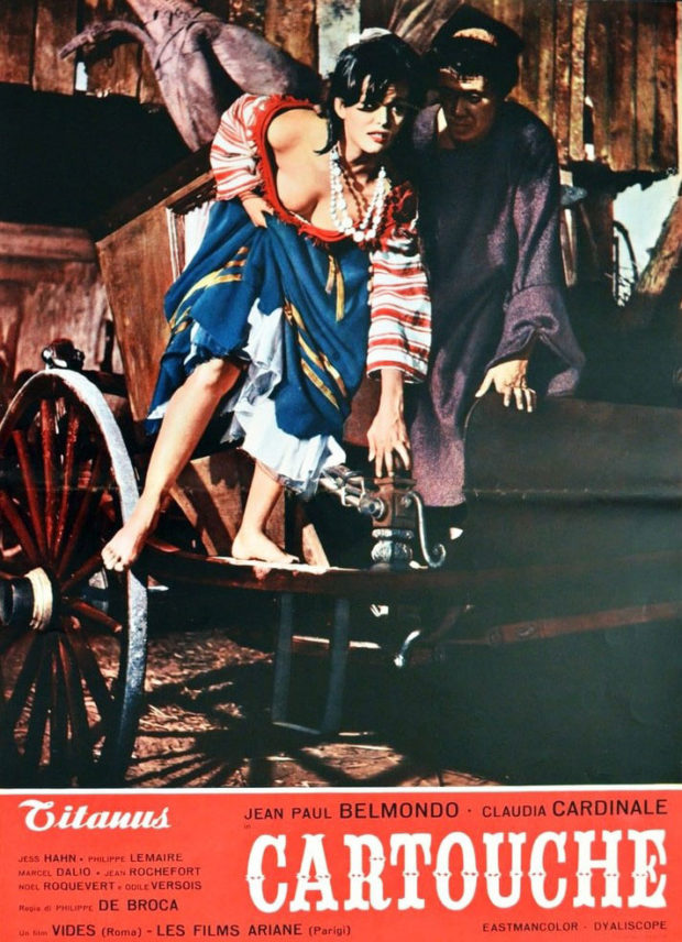 Jean-Paul Belmondo, alors seulement âgé de 29 ans, succédait à l’écran – et dans le cœur des français – à Jean Marais, héros de films tels que Le bossu (1959), Le Capitan (1960) ou encore Le capitaine Fracasse (1961), de vingt ans son aîné. Claudia Cardinale, qui interprète la compagne de Cartouche, Vénus, n’était alors quant à elle âgée que de 24 ans. Le couple qu’ils forment à l’écran est littéralement explosif.