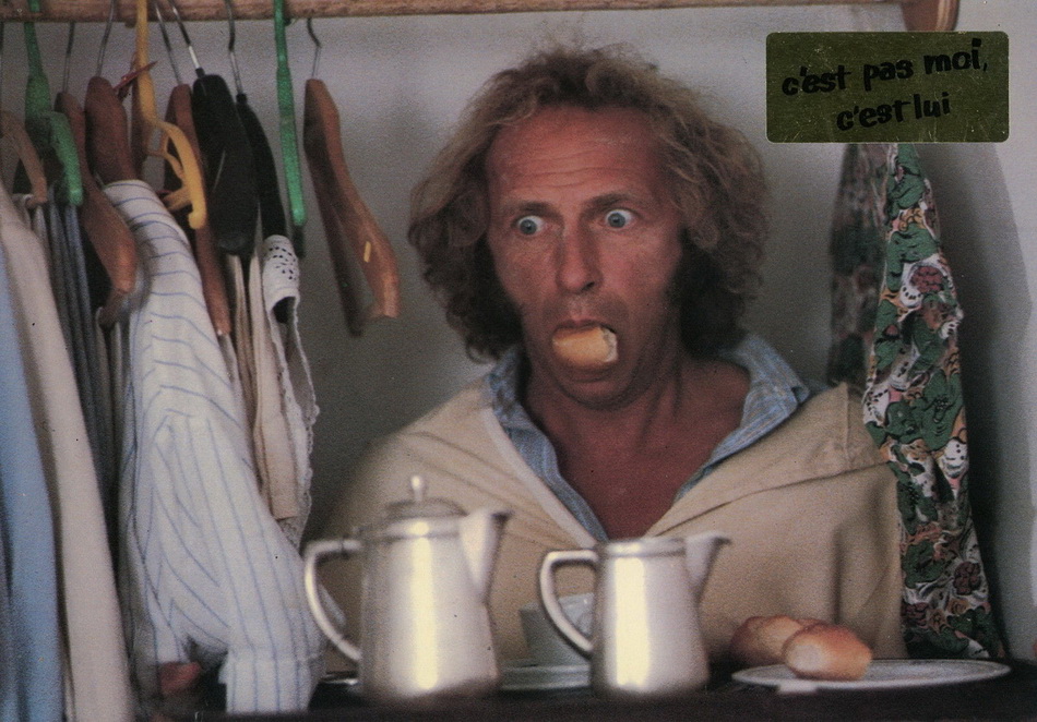 Plutôt plus réussi que leur film précédent, C’est pas moi c’est lui permettait aux deux cabotins de laisser libre cours à leurs fantaisies respectives. Campant deux personnages archétypaux dont ils maitrisent la composition sur le bout des doigts, les deux acteurs prennent le parti de s’amuser tout en donnant au spectateur exactement ce qu’il veut voir. Point de surprise à l’horizon donc : Pierre Richard reprend son sempiternel rôle de doux rêveur maladroit et dégingandé, Aldo Maccione son habituelle composition de « latin lover » imbu de sa personne, et le film d’enchainer les quiproquos sur un rythme soutenu et avec une bonne humeur finalement assez communicative. Du côté des seconds rôles, on retrouvera Valérie Mairesse, qui retrouvera Pierre Richard la même année dans Le coup du parapluie, ainsi qu’Henri Garcin, qui a tourné avec François Truffaut et Riccardo Freda, mais dont les quarantenaires se souviennent surtout pour son rôle dans la série TV Maguy (elle voit souvent rouge, avec elle ça bouge). Plaisir régressif, plaisir désuet, voire même poussif par moments, plaisir un peu honteux, C’est pas moi c’est lui n’en demeure pas moins un véritable petit plaisir pour le spectateur…