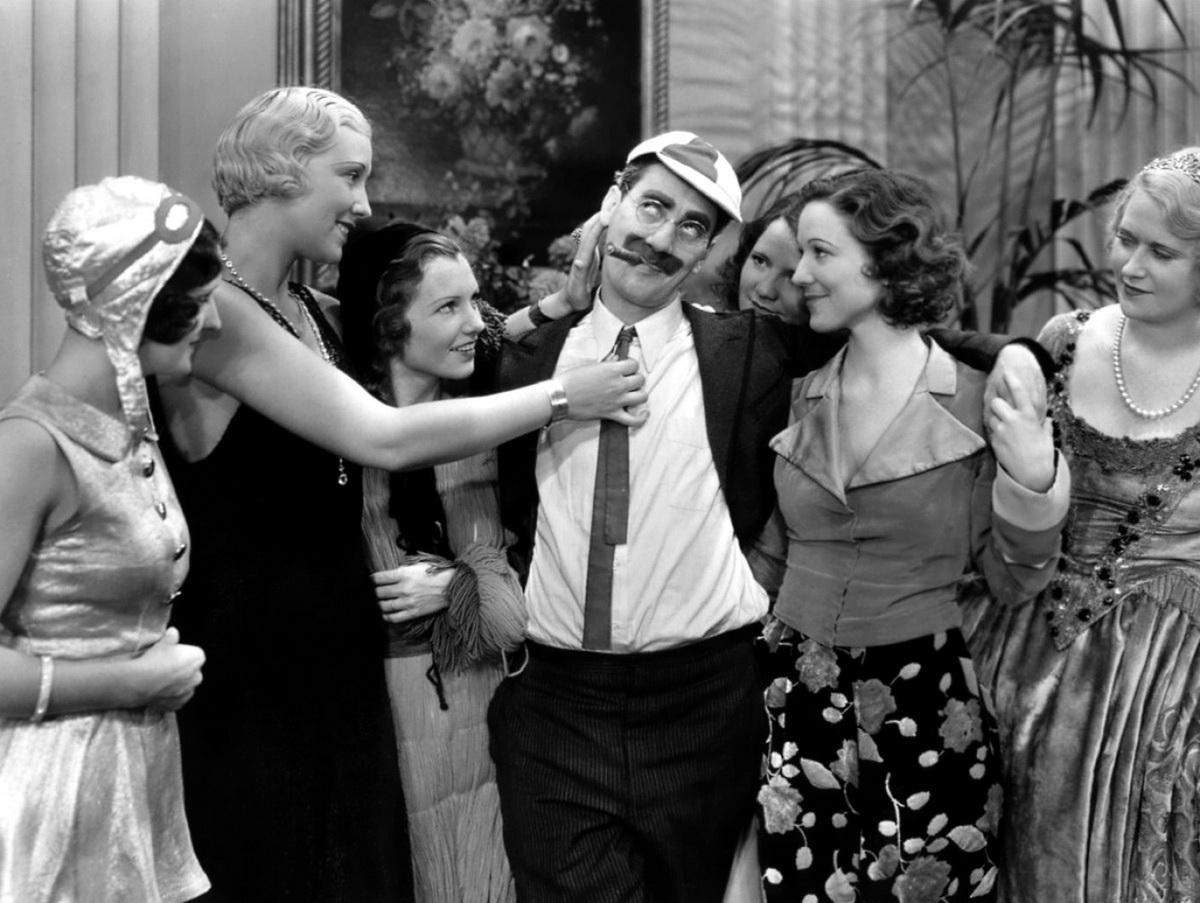 De leurs vrais noms Julius (Groucho), Adolph (Harpo), Leonard (Chico), Milton (Gummo) et Herbert (Zeppo), les frères Marx ont tout d’abord acquis leur popularité sur les planches de Broadway. Fort logiquement, leurs deux premiers longs-métrages étaient des adaptations de leurs pièces, Cocoanuts (Noix de coco, 1929) et Animal crackers (L’explorateur en folie, 1930).
