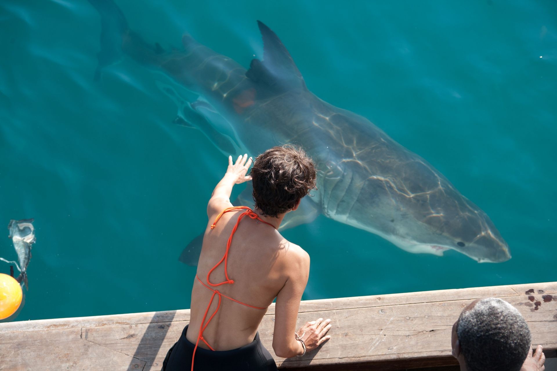 Première chose donc si vous visionnez Dark tide pendant les fêtes dans la chaleur cosy de votre foyer doux foyer : ne vous étonnez pas si vous trouvez qu’Halle Berry « fait jeune » : elle avait en effet huit ans de moins au moment du tournage. Idem pour Olivier Martinez, qui est aujourd’hui âgé de 79 ans et se déplace avec un déambulateur. Bon, OK, peut-être pas. Mais toute plaisanterie mise à part, la bonne nouvelle cependant est bel et bien que grâce à Metropolitan Vidéo, on puisse enfin découvrir le film dans sa version intégrale en France. On l’a évoqué un peu plus haut, la source d’inspiration principale de John Stockwell sur le tournage était probablement The reef, qu’il a voulu reproduire en mode « bigger and louder », avec un budget nettement plus confortable. Autrement dit, on a un peu en face de nous l’anti-Sharknado. Ici les requins sont présentés de façon réaliste, de même que les personnages, que les auteurs du film Ronnie Christensen et Amy Sorlie s’efforcent de présenter de façon crédible : deux solitudes créées par un événement dramatique s’efforçant de se « reconstruire » et d’aller de l’avant en repartant en mer. L’idée est intéressante, et le film prendra par moments des allures de quasi-documentaire, surtout durant sa première moitié, d’autant que Stockwell n’a vraiment pas son pareil quand il s’agit de filmer l’eau et/ou les paysages idylliques. Durant sa deuxième heure, les attaques de requins se multiplieront, et qu’on se rassure, le spectacle et l’efficacité seront bel et bien de la partie, même si l’ensemble y perd un peu en originalité.