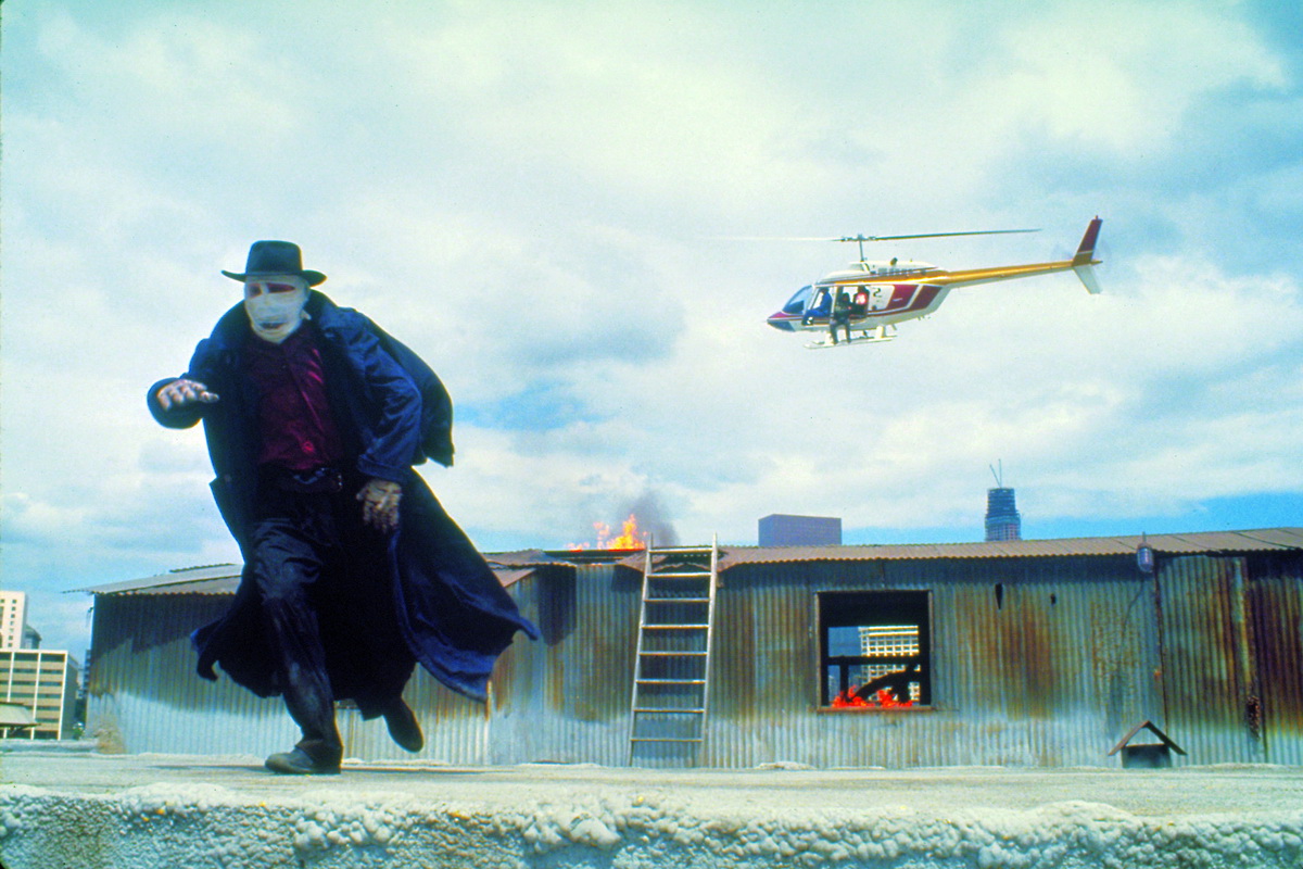N’ayant jamais peur du trop-plein, Raimi empile les intrigues et les raccourcis narratifs, changeant de ton à chaque séquence ou presque (romantisme, horreur, humour, action destroy…), et se met de fait à enchainer les séquences anthologiques à vitesse grand V : le premier meurtre, jouissivement génial, le défilé de sosies, la séquence de la foire, celle de l’hélicoptère, et enfin le final sur l’immeuble en construction, le tout sur une pétaradante musique signée Danny Elfman. Porté par l’énergie du cinéaste, qui se démène littéralement pour faire de chaque séquence de Darkman un petit film en soi, cette sombre et tragique histoire de superhéros a finalement donné naissance à un film surexcité, branque, complètement fou. La maturité aidant, Raimi reviendra par la suite, quelques années plus tard, à certaines idées, ou certaines séquences entières de son film pour les insérer dans d’autres longs-métrages, comme pour y revenir, à tête reposée. Comme si, au final, Darkman n’avait été qu’un « brouillon ». Mais quel brouillon !