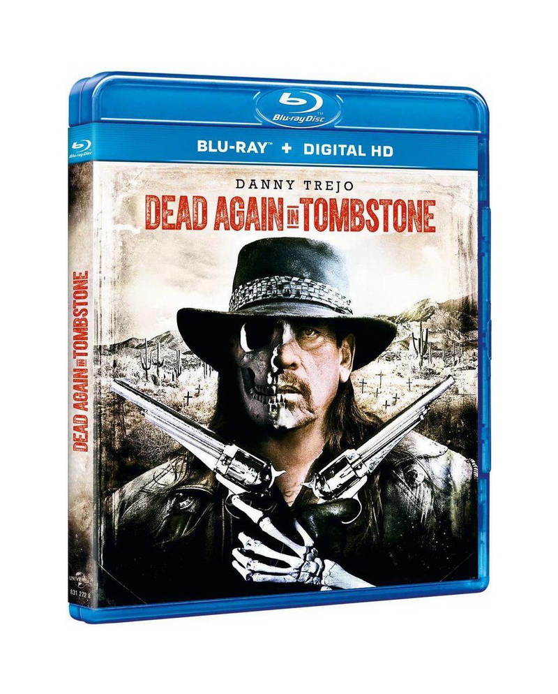 C’est bien entendu Universal Pictures qui nous propose aujourd’hui de découvrir les nouvelles de Guerrero, le pistolero mort-vivant, dans Dead again in Tombstone. Et on ne pourra que rendre les armes devant un master de toute beauté, affichant des couleurs superbes, des contrastes denses et des noirs d’une belle profondeur. La définition est irréprochable et le piqué souvent très précis, même en basse lumière. Coté enceintes, comme toujours chez l’éditeur, seule la version originale est encodée en DTS-HD Master Audio 5.1, dans un mixage littéralement tonitruant, surtout dans la dernière demi-heure du film : le final nous réserve notamment quelques passages bien riches en basses, en gros surrounds et effets multi-directionnels à gogo. Un poil en retrait, la version française uniquement mixée en DTS 5.1 s’avère également très spectaculaire et immersive, mais fait naturellement montre de moins de finesse.
