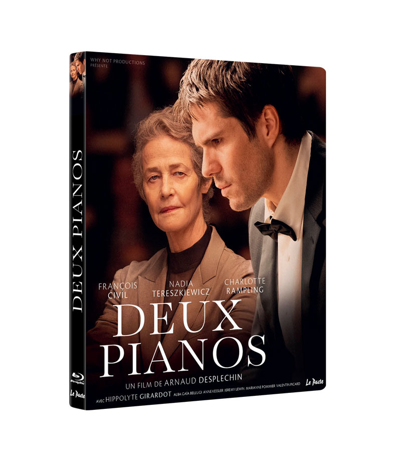 Le Blu-ray de Deux pianos, édité par Le Pacte, arrive dans un boîtier sobre qui reflète assez bien l’esprit du film : propre, appliqué, mais pas vraiment du genre à faire chavirer un collectionneur insomniaque. L’image se montre solide, avec un piqué agréable et des contrastes bien tenus, même si le film ne cherche jamais à impressionner visuellement. Les couleurs restent douces, presque timides, comme si Desplechin craignait de nous réveiller en haussant la voix. Côté son, le mixage DTS-HD Master Audio 5.1 fait le travail avec sérieux : les pianos respirent, les dialogues restent nets, et l’ensemble enveloppe sans jamais écraser. On aura également le droit à un mixage DTS-HD Master Audio 2.0, plus simple, qui conserve une belle clarté et conviendra à ceux qui préfèrent une écoute frontale. Rien de spectaculaire, mais Deux pianos n’a jamais prétendu jouer dans la cour des démonstrations techniques.