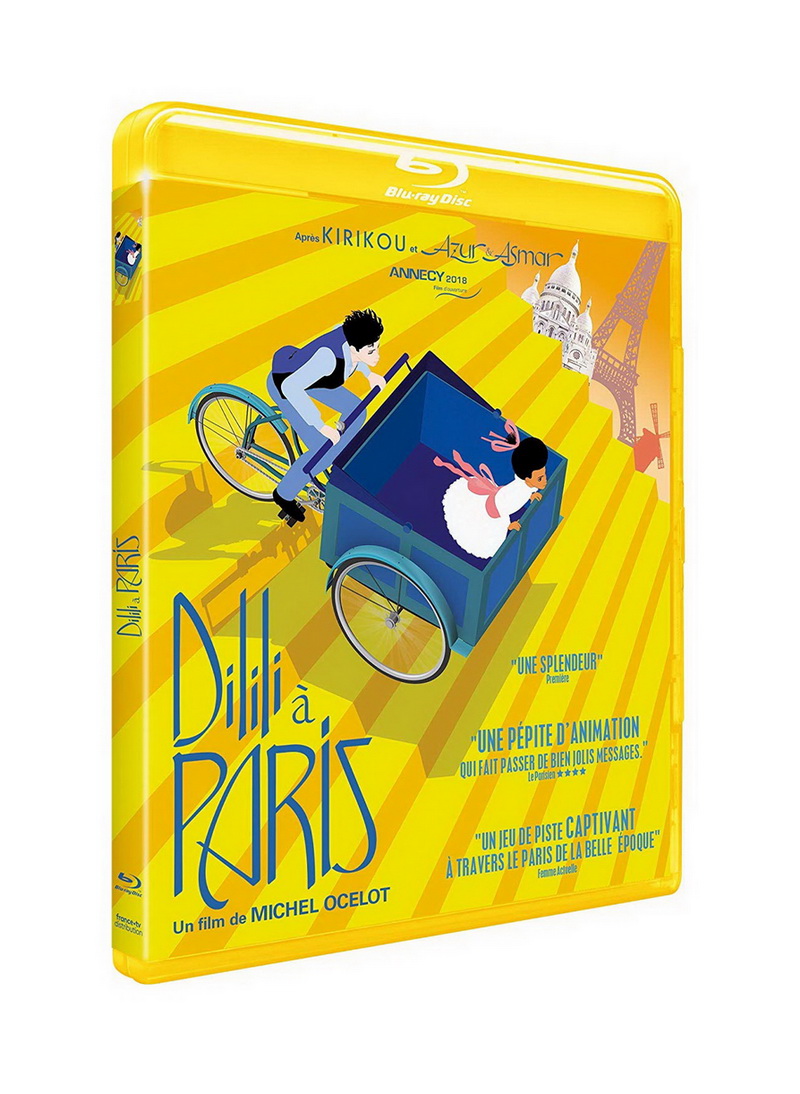 C’est donc aujourd’hui sous les couleurs de France Télévisions Distribution que débarque en Blu-ray Dilili à Paris, le « petit dernier » de Michel Ocelot. Techniquement parlant, la galette Haute Définition que nous propose l’éditeur a tout de la merveille, rendant clairement hommage au travail d’animation à l’ancienne du papa de Kirikou. L’image encodée en 1080p est à la hauteur de nos attentes et de nos exigences de consommateur, et on découvrira l’infinité de détails visuels du film avec une précision absolue : les couleurs sont superbes, la définition sans la moindre faille, c’est absolument magnifique. Côté audio, France Télévisions Distribution nous propose donc la VF dans un mixage DTS-HD Master Audio 5.1 à l’ampleur sonore remarquable, la spatialisation multi-canal nous réservant de très nombreuses surprises. On notera également la présence de sous-titres à destinations des sourds et malentendants.