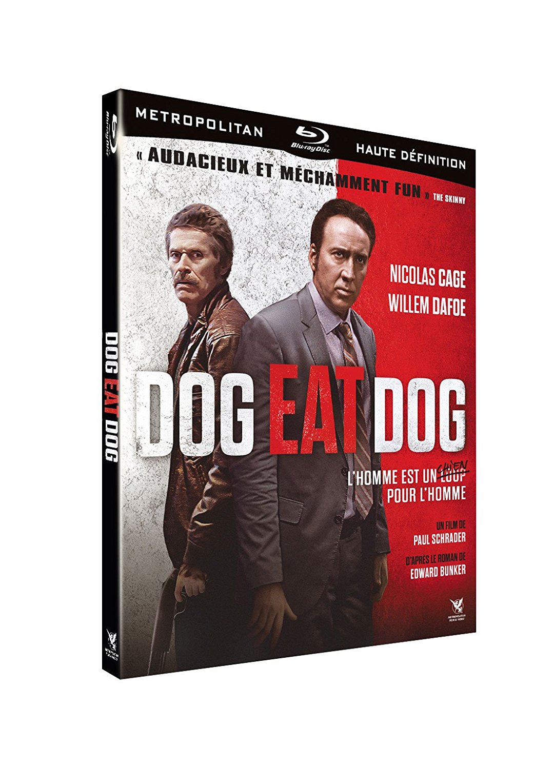 Après un petit passage par Cannes l’année dernière, Dog eat dog débarque donc aujourd’hui sur support Blu-ray sous les couleurs de Metropolitan Vidéo. L’image est précise, et on ne déplore aucun problème notable d’encodage. Le piqué fluctue un peu d’une séquence à une autre, les arrière-plans sont présentent par moments une légère pixellisation, mais cela est probablement dû aux méthodes de tournage de Schrader, et aux différents formats de captation de l’image. Les couleurs en revanche sont vraiment pétantes, et les noirs profonds. Côté son, c’est un festival de dynamisme : grosses basses effets surround très efficaces. Le mixage sonore est proposé en DTS-HD Master Audio 5.1 en VF et en VO, et passe en un éclair des ambiances discrètes finement spatialisées à des effets littéralement tonitruants propres à secouer les murs. On privilégiera néanmoins la VO : le retour de Paul Schrader aux affaires mérite bien cela, et les imitations d’Humphrey Bogart par Nicolas Cage ne sont perceptibles qu’en version originale.