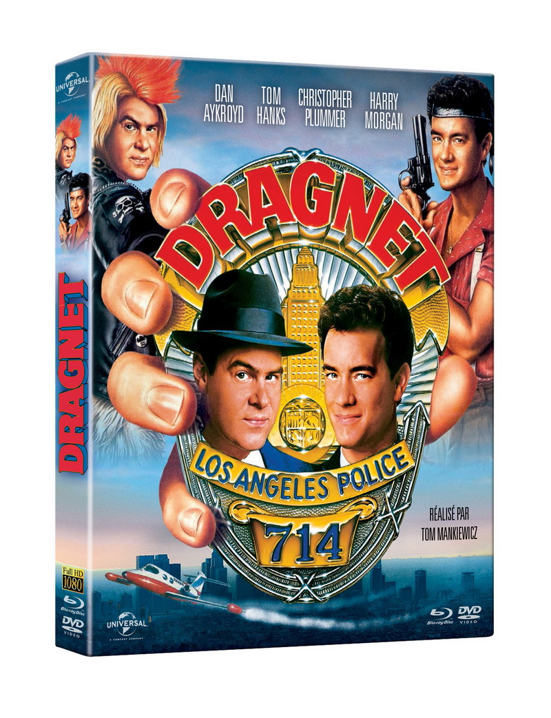 Car côté Haute Définition, les trois films de cette vague n’ont clairement pas à rougir de leurs prestations techniques : la définition est précise, les couleurs riches et bien saturées, les noirs sont profonds, et la restauration a globalement pris soin de préserver le grain argentique d’origine. Bien sûr, les plans « à effets » (générique, mentions écrites, fondus enchainés) accusent des effets du temps, mais le reste est d’une propreté et d’une stabilité tout à fait étonnantes. Tout juste remarquera-t-on, comme d’habitude avec les masters de chez Universal, un usage manifeste du réducteur de bruit, mais ce dernier semble avoir été, dans les trois cas, utilisé avec parcimonie. Malgré cette petite réserve donc, la galette Blu-ray de Dragnet nous propose un rendu HD tout à fait appréciable, qui enterre définitivement l’édition DVD du film, disponible depuis 2001 (la préhistoire !). Côté son, la version originale ainsi que la version française d’origine sont toutes deux mixées en DTS-HD Master Audio 2.0, dans des mixages propres, équilibrés et toujours clairs. Dans le cas de Dragnet (sans doute plus que pour les deux autres films de la vague), on notera cependant une préférence assez marquée pour la version originale, plus convaincante pour de simples raisons artistiques : impossible en effet de faire l’impasse sur la prestation vocale de Dan Aykroyd, qui a fait d’énormes efforts pour retrouver le phrasé et les intonations de Jack Webb, malgré un physique très éloigné.