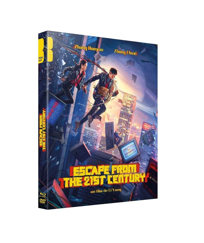 Le Blu-ray d’Escape from the 21st Century, édité par Blaq Out, se présente dans un packaging sobre mais élégant, fidèle à la ligne graphique de l’éditeur. Le boîtier, solide et bien illustré, met en avant l’esthétique pop et futuriste du film sans tomber dans la surcharge visuelle. Techniquement, l’image, issue d’un master Haute-Définition propre, offre un rendu éclatant : les couleurs saturées retrouvent toute leur vivacité, les contrastes sont stables, et les effets lumineux bénéficient d’une précision remarquable. Les scènes les plus dynamiques, notamment celles où les personnages voyagent dans le temps, profitent d’une fluidité exemplaire, sans artefacts ni saccades. Le film bénéficie ainsi d’une présentation visuelle qui respecte pleinement son identité graphique, et ses multiples changements de format. L’ensemble est cependant présenté en 1080i. Côté son, Blaq Out nous propose une piste DTS_HD Master Audio 5.1 ample et immersive, en VO uniquement. Les dialogues sont nets, les ambiances futuristes bien réparties, et les effets sonores circulent avec fluidité dans l’espace. La musique, souvent énergique, profite d’une restitution propre, sans saturation. Le mixage nous offre donc une écoute confortable et fidèle à l’esprit du film, et l’ensemble forme un rendu sonore équilibré, respectueux du matériau d’origine.