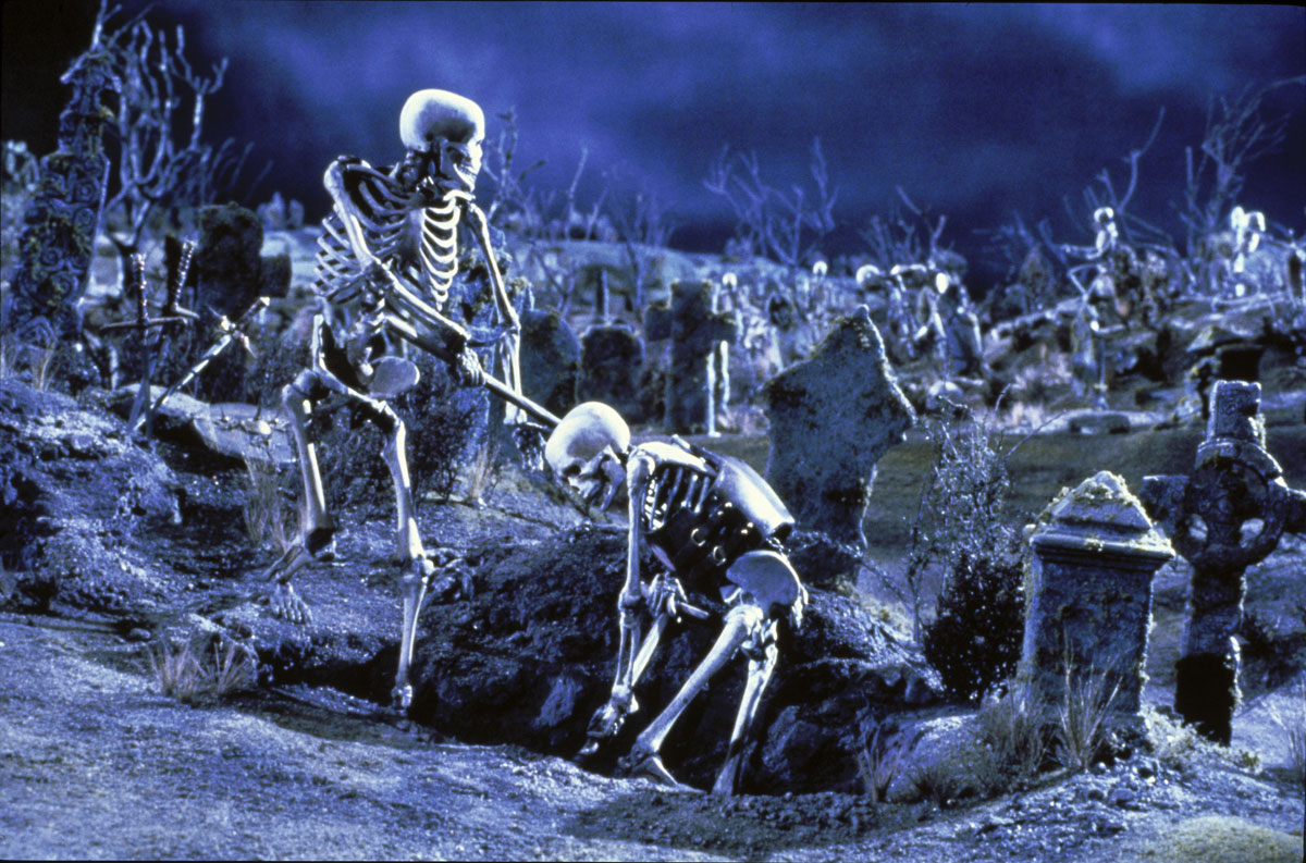 Au delà de Ash bien sûr, il y a un récit d’aventure mêlé de slapstick et de conte fantastique, plutôt orienté grand public et résolument bon enfant, remplaçant donc au pied levé l’horreur rigolarde des deux premiers volets. En résulte donc un film épico-comique au cœur duquel Sam Raimi se laisse à nouveau aller à quelques expérimentations formelles vraiment brillantes, donnant une superbe ambiance « bande-dessinées » à son histoire pétrie de références diverses allant, pour les plus évidentes d’entre elles, des Trois Stooges aux cartoons (bruits de petits oiseaux à l’appui) en passant par Ray Harryhausen ou encore Le jour où la Terre s’arrêta (sic). On notera également la présence d’un excellent doublage français qui, s’il a bien sûr ses limites, multiplie néanmoins les bonnes trouvailles (« Chez Priba, les prix sont bas ! ») et propose une adaptation fort soignée et attachante, surtout pour qui aura découvert le film adolescent.