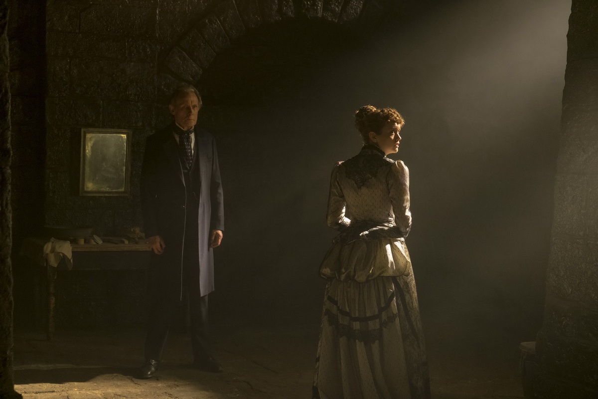 Adapté d’un roman de Peter Ackroyd, le film imagine et met en scène un mystérieux tueur semant la mort dans le quartier pauvre de Limehouse à Londres – l’intrigue prenant place en 1880, la référence à la figure de Jack l’éventreur (1888) est évidente, et l’esthétique choisie par Juan Carlos Medina et son directeur photo Simon Dennis (Peaky Blinders) joue énormément sur les réminiscences cinématographiques et picturales pouvant exister dans l’esprit du spectateur à l’évocation de Jack l’éventreur et du quartier de White Chapel. Visuellement, Golem, le tueur de Londres s’avère donc d’une classe absolue. Le trio d’acteurs principaux, composé de Bill Nighy, Olivia Cooke (Ouija) et Douglas Booth (Jupiter : Le destin de l’univers) est également assez excellent.