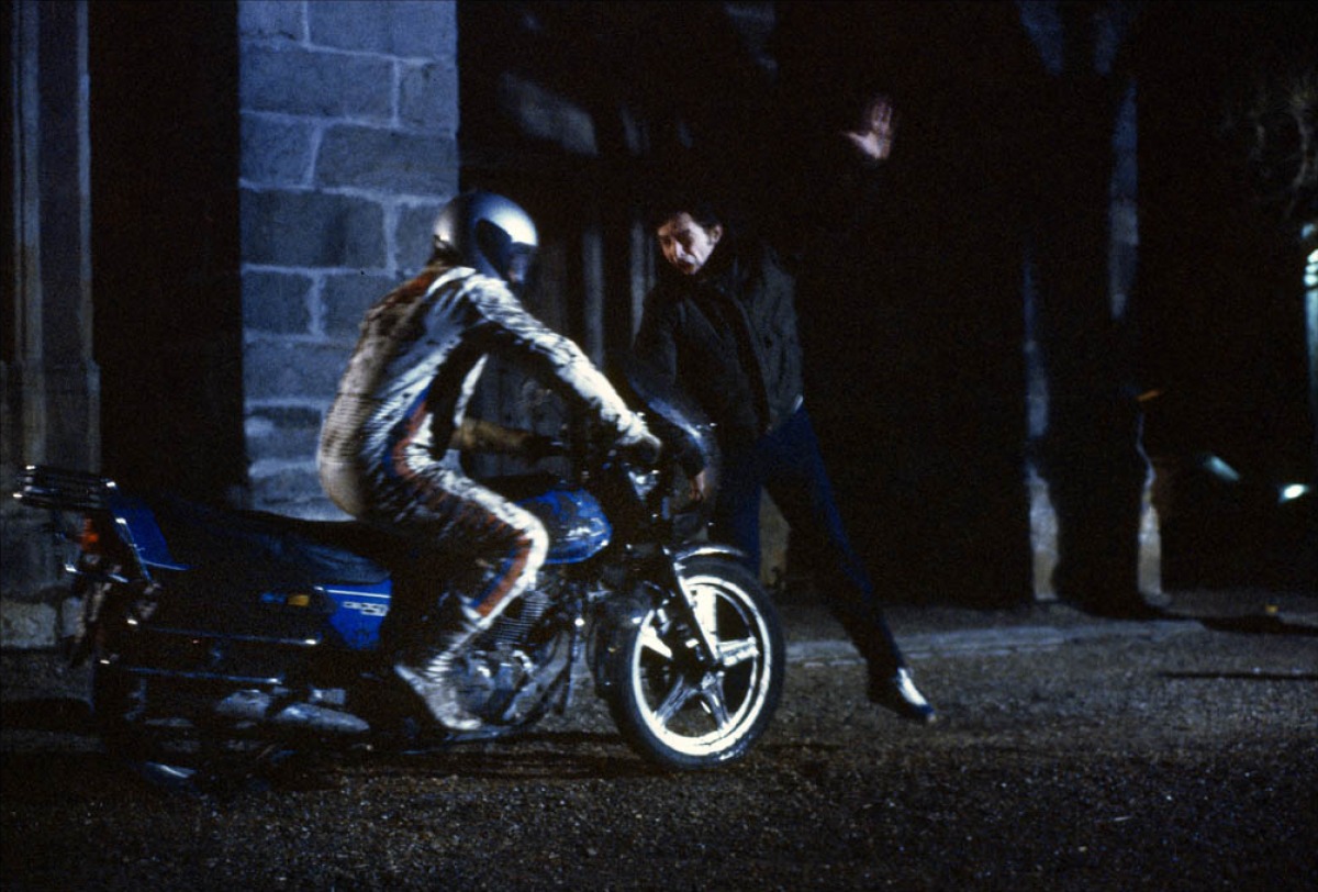 Haine suit les démêlés d’un motard incarné par Klaus Kinski avec les habitants d’un petit village de la France profonde persuadé qu’il est l’auteur d’un crime atroce. En un peu moins d’une heure trente, le film mettra en scène le véritable « martyre » d’un étranger ayant juste eu la malchance de tomber au mauvais endroit au mauvais moment. Le terme est d’ailleurs particulièrement adéquat, tant Haine joue ostensiblement la carte de la métaphore christique : l’étranger interprété par Kinski vivra un véritable calvaire, sacrifié par des villageois en état de transe qui le mettront au supplice en le crucifiant littéralement sur un transformateur électrique. Les derniers instants du film, qui mettent en scène le corps du motard exposé dans une église baignée de lumière, peuvent d’ailleurs laisser libre cours à toutes sortes d’interprétations… Le film s’achève en effet sur un lent zoom sur le casque du personnage de Kinski, dans lequel on ne distingue plus son visage. S’agit-il d’une amorce de résurrection pour ce martyr de la France rurale ?