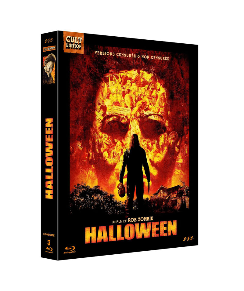 On l’attendait depuis plus de quinze ans, on n’osait plus espérer le voir débarquer un jour en Blu-ray, mais ça y est : le Halloween de Rob Zombie débarque en Blu-ray chez ESC Éditions dans une édition spéciale et limitée, qui arrive dans un boîtier Digipack trois volets nanti d’un étui rigide numéroté. Cet élégant coffret contient le Blu-ray du film en version non censurée (2h02), le Blu-ray du film en version cinéma (1h50), une affiche et un Blu-ray de bonus contenant un making of fleuve d’une durée de plus de quatre heures ! Autant dire donc que cette édition sent bon la sueur rance, le latex moisi et les hurlements étouffés – tout ce qu’on aime !