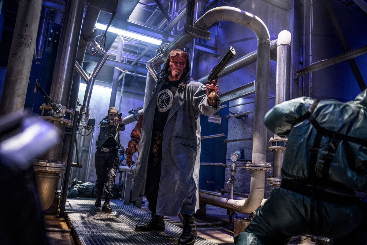 C’est Metropolitan Vidéo qui édite aujourd’hui le Blu-ray de Hellboy, et comme à son habitude, l’éditeur nous livre une galette techniquement soignée. Le master est littéralement superbe, affichant un piqué d’une précision absolue. Les couleurs montrent une belle pêche, les noirs sont solides et profonds : c’est du très beau boulot, rendant pleinement honneur au travail sur la photo essentiellement nocturne de Lorenzo Senatore, adaptée à un tournage en numérique avec la caméra Arri Alexa SXT. Côté son, Metro fait également très fort puisque le film bénéficie de deux pistes époustouflantes : on privilégiera bien sûr la VO mixée en Dolby Atmos, d’un dynamisme échevelé, surtout sur les scènes d’action naturellement : quand la violence commence à se déchainer, tous les canaux y vont de leur puissance et le caisson de basses sollicité à intervalles très réguliers. Le film étant déjà très impressionnant, ce mixage ajoute encore à l’ambiance et participe pleinement à l’immersion du spectateur au cœur du film. Mais la VF n’a pas à rougir de sa prestation : proposée en DTS-HD Master Audio 7.1, elle impose également un solide dynamisme, dont le spectateur profitera de façon optimale durant les scènes en extérieur, qui proposent de multiples détails sonores parfaitement rendus et spatialisés.