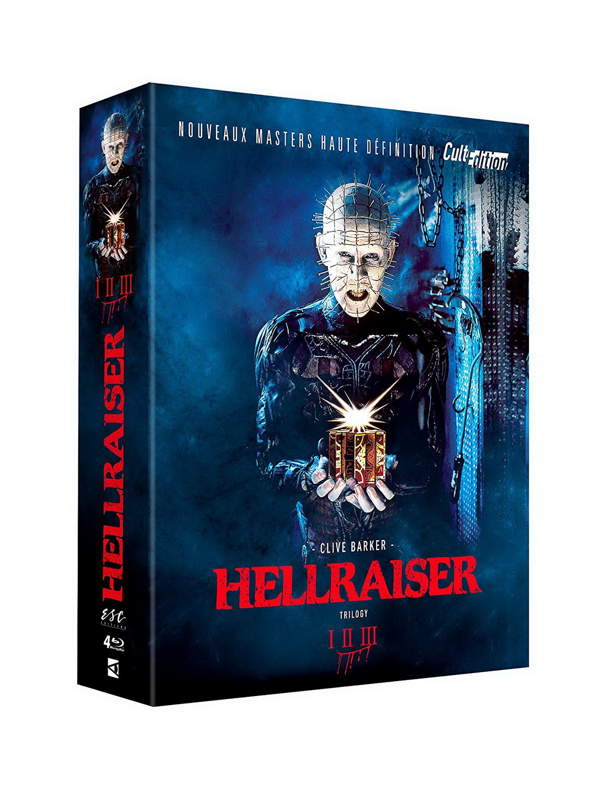 Le coffret Blu-ray Hellraiser : Trilogy I-II-III édité par ESC Éditions / L’Atelier d’images contient donc rien de moins que quatre galettes Haute Définition, ainsi qu’un riche bouquin de 152 pages exclusif à l’édition Blu-ray et intitulé « Hellraiser – Voyage au bout de l’enfer », écrit par Marc Toullec. Le tout s’affiche dans un beau boîtier Digipack quatre volets surmonté d’un étui cartonné : un packaging impeccable pour un bel objet qui ravira à coup sûr les collectionneurs et s’impose comme ce qui se fait de mieux dans l’hexagone en matière d’édition collector.
