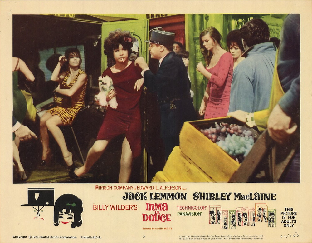 De peur peut-être d’effrayer le public, Billy Wilder et I.A.L. Diamond mettent la pédale douce sur la critique sociale acerbe qui faisait tout le sel de leurs films précédents et qui, si elle est bel et bien présente en filigrane (avec une illustration du système capitaliste sur la base d’une rue où la prostitution bat son plein), cède largement sa place à une romance à l’eau de rose qui s’étirera sur toute la durée du film. Les deux scénaristes adaptant une comédie musicale signée Alexandre Breffort, le film propose toujours beaucoup de personnages hauts en couleurs, mais ceux-ci bénéficient d’un traitement moins fouillé et moins convaincant que sur les films précédents. Bien sûr, Irma la douce ne fait pas tout à fait l’impasse sur la description de ces fameux personnages secondaires, mais ces derniers n’existent finalement que comme de simples « silhouettes » vaguement interchangeables ; rien à voir avec les caractères bien définis qui participaient au foisonnement d’idées et à la richesse de leurs grandes réussites de la fin des années 50.