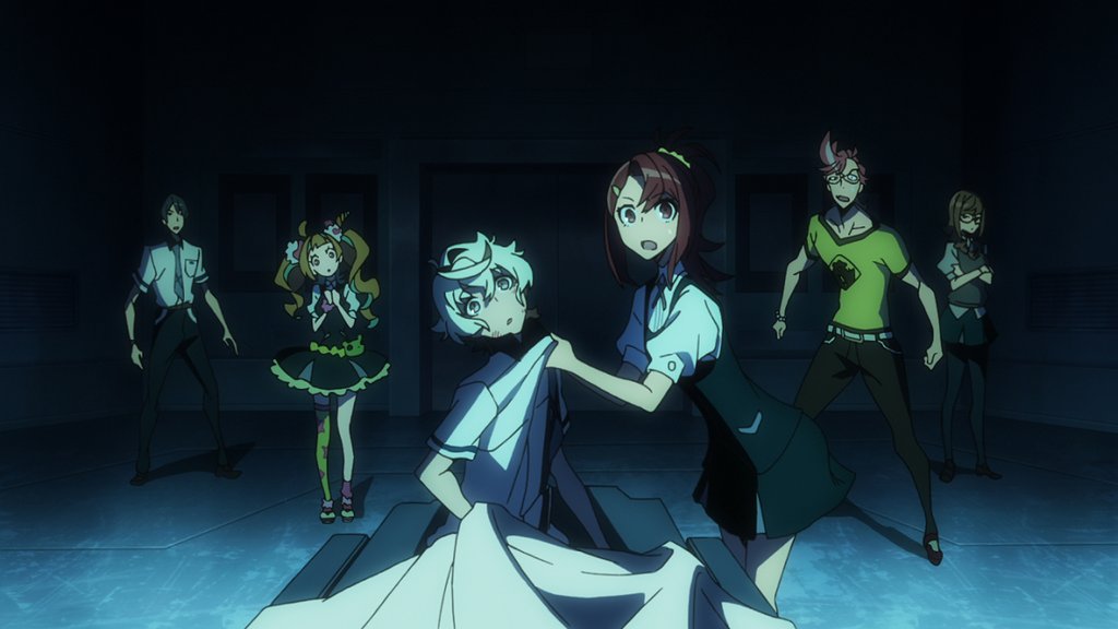 Studio Trigger oblige, Kiznaiver est une réussite visuelle de tous les instants – les décors sont sobres mais assez sublimes, et le character design signé Shirow Miwa s’avère tout bonnement épatant de punch et d’énergie, en plus de parfaitement coller à la thématique selon laquelle chaque personnage représente un « archétype » précis. Le contraste décors / personnages donne une partie de son pep’s à la série, qui fait par ailleurs preuve d’une évolution régulière. En effet, le rythme est excellent, les épisodes s’enchainent sur un scénario solide, sans précipitation subite en fin de saison ou d’épisode centré sur un personnage ou un arc narratif externe qui viendrait ralentir brutalement (voire même purement et simplement casser net) l’évolution de l’intrigue.