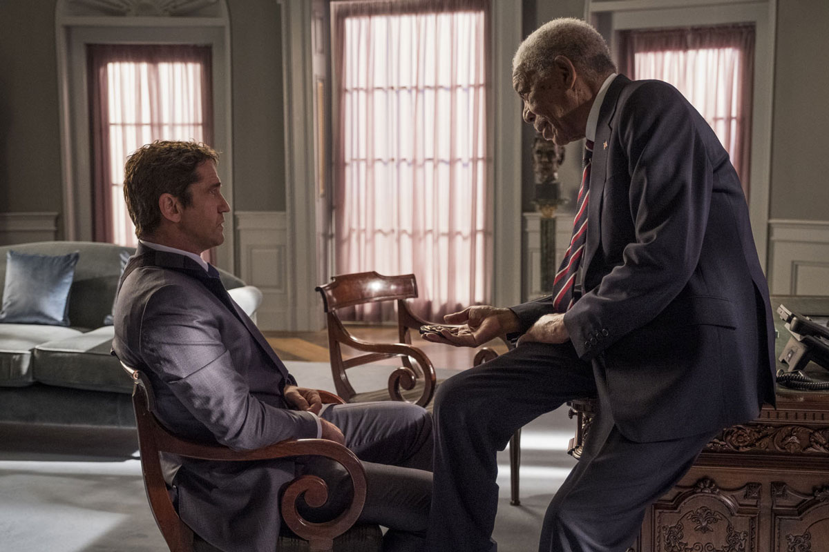 « Si l’on veut bien admettre que le cinéma hollywoodien reflète de près ou de loin l’actualité américaine, il n’en existe aucun indicateur plus révélateur que les films ayant trait à la présidence. La façon dont sont représentés le chef de l’état et la mission tour à tour délicate et périlleuse qu’il exécute renvoie dans la plupart des cas l’image que les États-Unis se font d’eux-mêmes. (…) Quel acteur américain autre que Morgan Freeman pourrait encore interpréter la figure présidentielle tel qu’elle aurait dû être jusqu’à ce jour, ferme mais bienveillante, paternelle mais vigoureuse ? Même si son retour pour la deuxième fois de suite dans l’univers de l’agent Banning, à présent au sommet du gouvernement, nous fait plaisir, l’agencement de son rôle en dit long sur l’état de la présidence américaine à l’heure actuelle. Le président Trumbull passe en effet le plus clair de son temps suspendu à du matériel médical dans un lit d’hôpital, inconscient et donc incapable d’intervenir, pendant que les éminences machiavéliques de Washington mènent la danse. Cette prémisse est si peu ingénieuse et surtout si éloignée des préoccupations du monde politique d’outre-Atlantique, secoué jusque dans ses fondements à chaque nouveau tweet au ton incendiaire, qu’elle perd toute utilité de commentaire détourné sur ce qui se passe dans les couloirs du pouvoir américain en ce moment. Et même le moteur dramatique de protection du chef de l’état, mis en danger dans des circonstances de plus en plus abracadabrantes de film en film, est supplanté ici par une reprise très peu excitante du mode opératoire du Fugitif de Andrew Davis, au détail près que le protagoniste connaît assez bien le système pour pouvoir profiter de ses failles. Bref, d’un point de vue politique, il n’y a strictement rien de pertinent à tirer de la part d’un film, qui ne s’en sort guère mieux en termes de divertissement musclé. (…)
