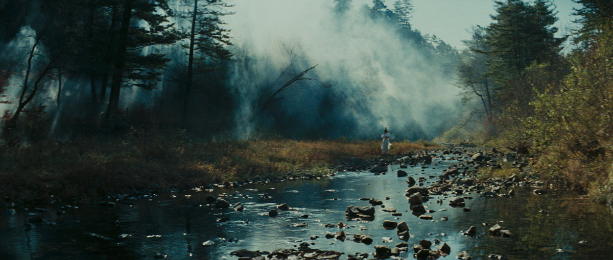 La « légende » raconte que La légende de la montagne et Raining in the mountain furent tournés en même temps, et dans les mêmes décors. La grande majorité du casting de l’un se retrouvera donc dans l’autre, même si King Hu s’est visiblement amusé à confier à ses acteurs des rôles diamétralement opposés d’un film à l’autre. Visiblement très inspiré par l’aspect grandiose de ses lieux de tournage, King Hu se laisse doucement porter par la nature et l’ambiance littéralement flamboyante du lieu où prend place le récit. De fait, La légende de la montagne prendra rapidement –dans sa première partie du moins– des allures de flânerie contemplative en forêt, au grand air, au bord de l’eau… La nature et son intrinsèque beauté tiennent une place prépondérante dans l’histoire qui nous est contée par l’esthète taïwanais, mais la tranquillité recherchée par le personnage principal muera par la suite rapidement en une étrangeté annonciatrice, par bien des aspects, de la trilogie-culte Histoire de fantômes chinois (Ching Siu-Tung, 1987-1991).