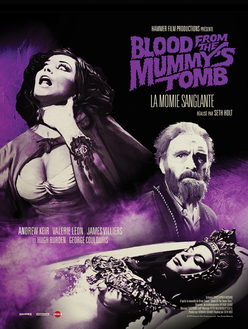 A ce jour, La momie sanglante est uniquement disponible en Blu-ray au sein du coffret Hammer 1970-1976 – Sex & Blood, disponible chez Tamasa Diffusion depuis le 30 novembre. Ce coffret est disponible en édition limitée et numérotée à 2 000 exemplaires, et nous propose sept films produits par le studio Hammer dans les années 70, dans de superbes versions restaurées, scannées en 4K et restaurés en 2K sous la supervision de Mark Bonnici. Plutôt que d’évoquer la sortie de ce coffret majeur dans un papier lapidaire qui nous aurait contraint à évoquer les films de façon trop rapide, on a pris le parti d’évoquer chaque film de façon individuelle, dans une série d’articles qui paraitront dans les jours et semaines à venir. Sur les sept films qui composent le coffret Hammer 1970-1976 – Sex & Blood, seuls six étaient jusqu’ici disponibles en France au format DVD, chez StudioCanal. Les films disponibles au sein du coffret sont les suivants : Les horreurs de Frankenstein (1970, inédit en DVD), Les cicatrices de Dracula (1970), Dr Jekyll et Sister Hyde (1971), La momie sanglante (1971), Sueur froide dans la nuit (1972), Les démons de l’esprit (1973) et Une fille pour le Diable (1976).