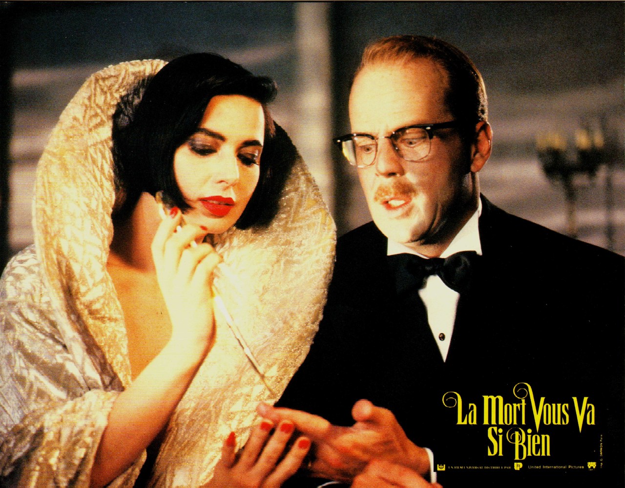En effet, on retrouve beaucoup dans La mort vous va si bien de la fantaisie et de la virtuosité déployée par Sam Raimi sur sa saga horrifique. Bien sûr, il y a le personnage de Goldie Hawn qui, dans le dernier tiers du film, affiche une tête de zombie évoquant furieusement la « créature » planquée dans la cave dans Evil dead… Mais on a aussi et surtout le personnage incarné par Bruce Willis, qui à l’image de Bruce « Ash » Campbell dans Evil dead, passe tout le film à s’en prendre plein la gueule, comme dans un « slapstick » d’antan. C’était d’ailleurs souvent le cas à cette période bénie de sa carrière : ses rôles dans des films tels que Boire et déboires, Piège de cristal, Hudson hawk ou encore Le dernier samaritain démontrent bien le plaisir qu’avaient les réalisateurs américains à le malmener, quitte à en faire une figure de héros « souffre-douleur » qu’il perdra au fur et à mesure après Une journée en enfer en 1995.
