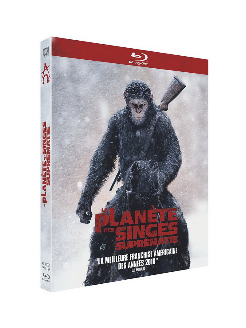 Le Blu-ray de La planète des singes – Suprématie édité par 20th Century Fox s’avère à nouveau un parfait exemple de l’excellence du support HD en matière d’immersion et de confort de visionnage. Pas la peine de chercher la petite bête, le transfert du film de Matt Reeves est littéralement sublime, nous offrant un piqué, des textures et des couleurs d’une richesse impressionnante. Qu’il s’agisse de plans larges foisonnant de personnages ou de gros plans, c’est impeccable, irréprochable, avec des noirs profonds et une profondeur de champ exceptionnelle. Côté enceintes, c’est surtout dans le dernier acte du film que débutera le feu d’artifice sonore avec une VO encodée dans un tonitruant DTS-HD Master Audio 7.1 : le mixage en envoie plein les oreilles et fait littéralement trembler les murs pendant les époustouflantes séquences guerrières, mais sait également durant les scènes les plus calmes imposer une véritable démonstration acoustique de finesse, de placement des voix et de restitution des échos. La version française, simplement proposée en DTS 5.1, se démène comme une bougresse mais s’avère forcément inférieure en termes de grand spectacle. C’est un peu dommage pour les amateurs de versions françaises (et on sait qu’ils sont nombreux, surtout sur ce genre de films), mais dans son genre, et si l’on oublie un instant la « comparaison » avec la piste en version originale, elle s’avère tout à fait solide et très spectaculaire.