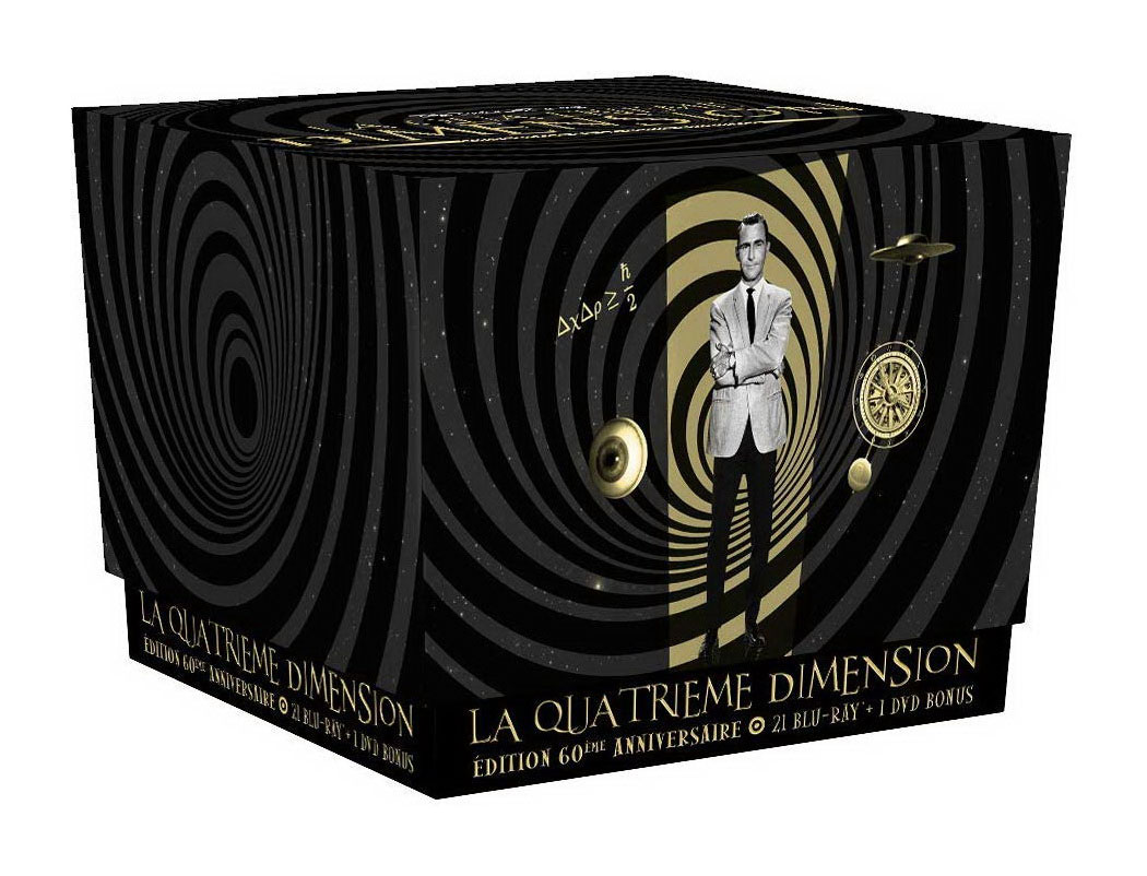Une porte donc. Une porte entrouverte d’où nous parviennent les accords d’une musique qui en ce lieu paraît irréelle. Est-ce… le côté obscur ? Contre toute attente, non. Juste une pièce ronde, plongée dans l’obscurité, au centre de laquelle est posé un coffret Blu-ray de l’intégrale de La quatrième dimension. Un étrange rai de lumière éclaire l’objet, qui s’impose comme une apparition fantomatique, semblant comme flotter au-dessus du sol. 21 Blu-ray + 1 DVD de bonus, le tout étant présenté dans un sublime coffret au cœur duquel on trouvera également un guide des épisodes (60 pages) ainsi qu’un livret de 20 pages écrit par Martin Winckler et Alain Carrazé, véritables sommités en la matière. VF et VOST sur les saisons 1, 2, 3 et 5, VOST uniquement sur la saison 4. L’épisode de la saison 5 « La rivière du hibou » pour la première fois en vidéo. L’émotion est intense, palpable. On est en présence d’un objet rare et précieux, sobre, compact et élégant, présentant des finitions parfaites. Le Graal pour les amateurs de séries TV autant que pour les fondus de science-fiction.
