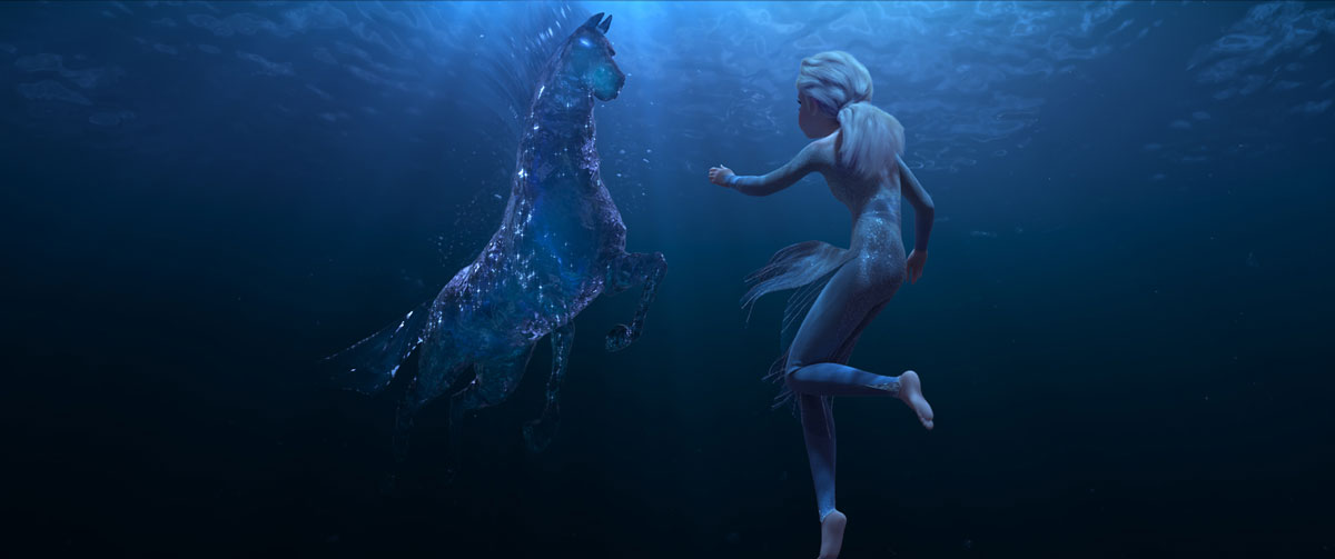 L’histoire mêle des questionnements forts sur les relations entre des peuples ennemis qui souffrent de ne pas s’écouter, sur l’écologie et sur les rapports entre hommes et femmes. Le discours sociologique n’écrase pas le divertissement mais l’ancre dans une réalité transcendée par son contexte de fantaisie. Une séquence sous-marine féerique surprend par sa richesse formelle et son côté effrayant, Elsa se voyant attirée sous l’eau par une étrange monture. La délicate Anna est à nouveau doublée par Emmylou Homs, Charlotte Hervieux remplace Anaïs Delva dans celui de sa sœur glacée.
