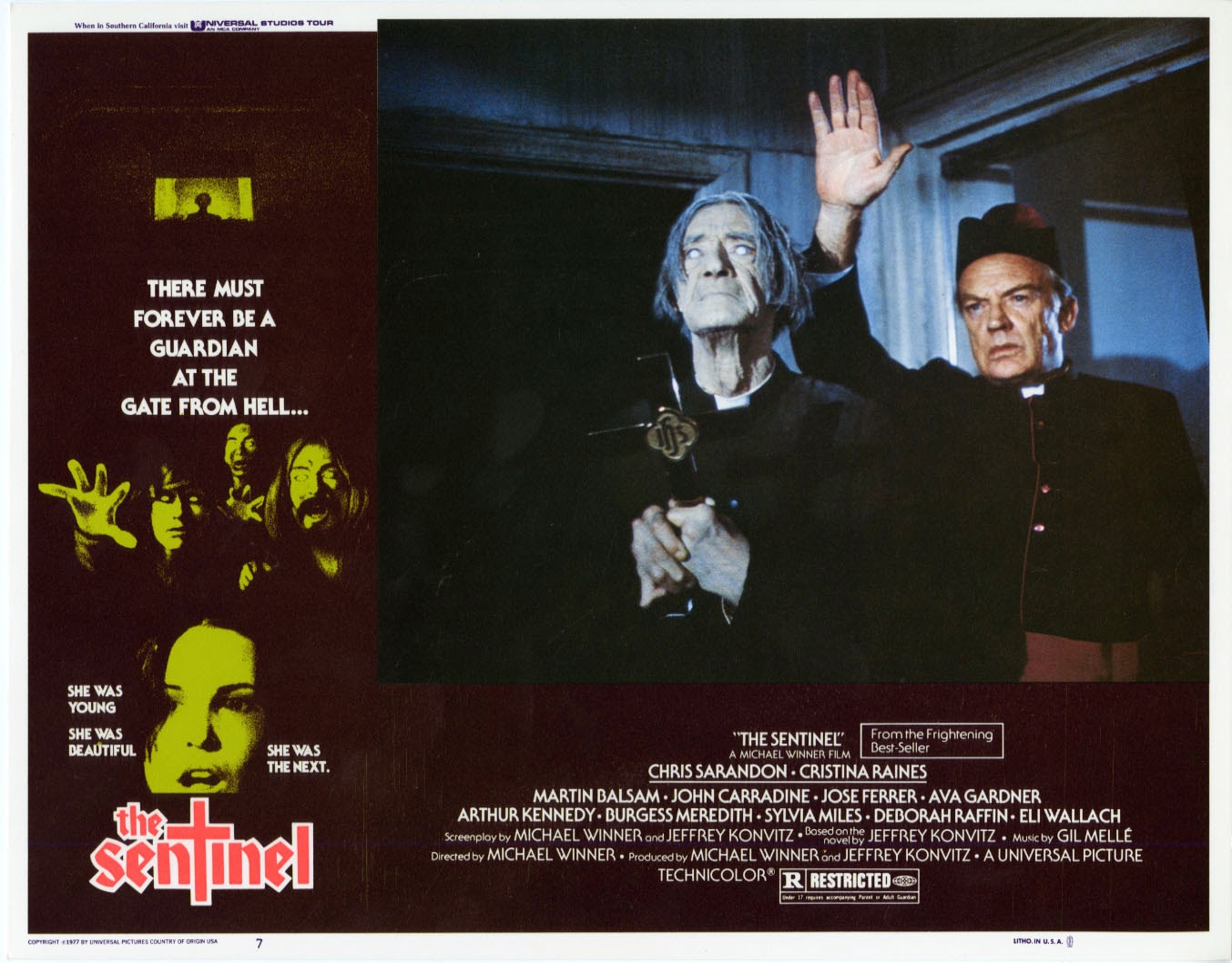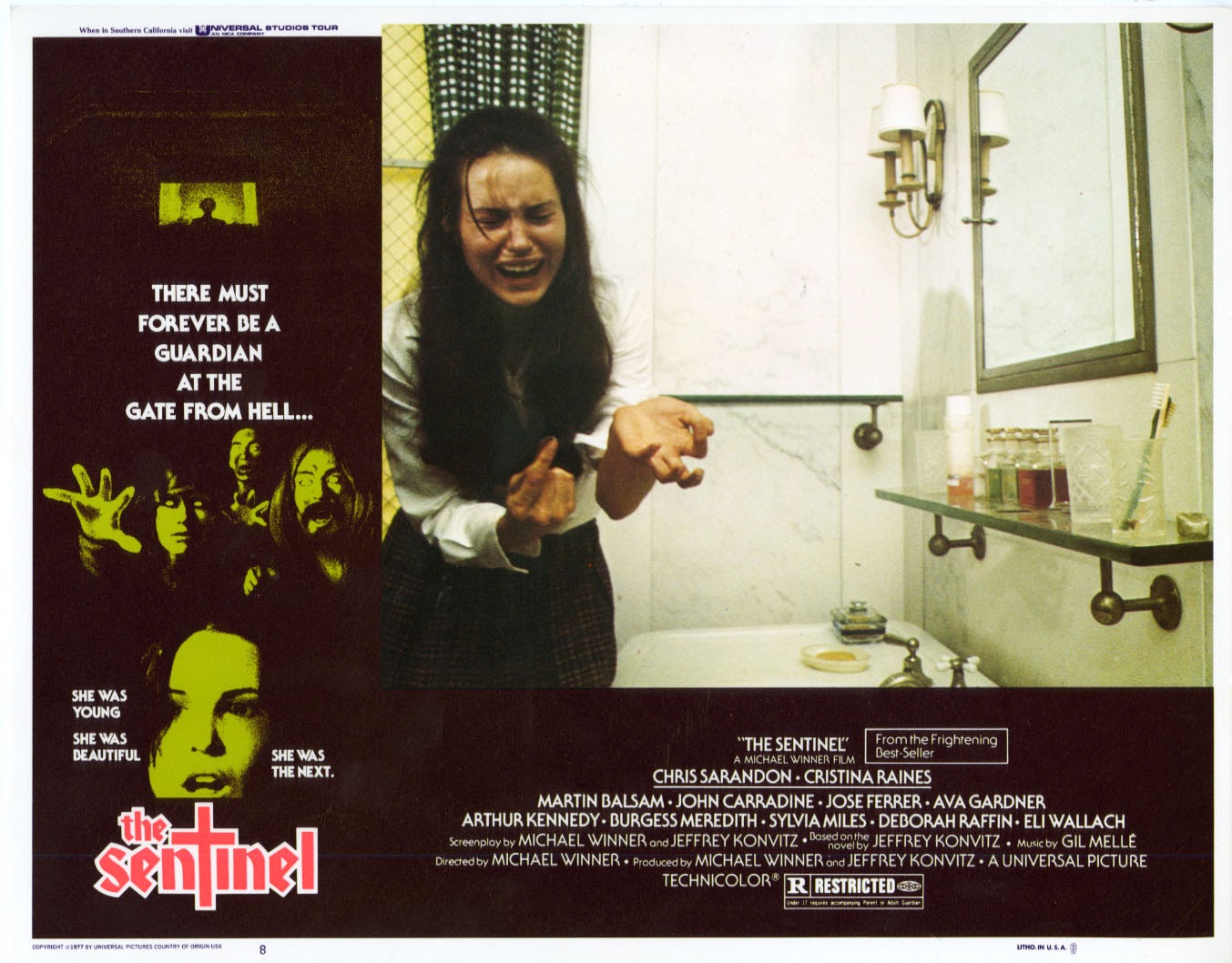 Unique film d’horreur de la carrière de Michael Winner, La Sentinelle des maudits est sorti sur les écrans en 1977, c’est-à-dire en pleine période faste pour le cinéma fantastique « de studio ». Après Rosemary’s baby (Roman Polanski, 1968) pour la Paramount, L’exorciste (William Friedkin, 1973) pour Warner et La Malédiction (Richard Donner, 1976) pour la Fox, le film de Winner donnait l’occasion au studio Universal de se lancer également dans le grand frisson sur celluloïd. Le film et le scénario de Jeffrey Konvitz surferont donc sur les thématiques « démoniaques » chères aux grands studios à l’époque. Plus particulièrement, il est quasiment impossible, à l’évocation du film, de taire l’influence qu’a pu avoir Rosemary’s baby, tourné neuf ans auparavant, sur la production et le tournage de La sentinelle des maudits – une influence grande, envahissante, planant telle une ombre pesante sur le film de Michael Winner au point que ce dernier demeure, encore aujourd’hui, relativement méconnu du grand public. Encore plus surprenant : La sentinelle des maudits restait jusqu’à ce jour tristement inédit en DVD en France.
