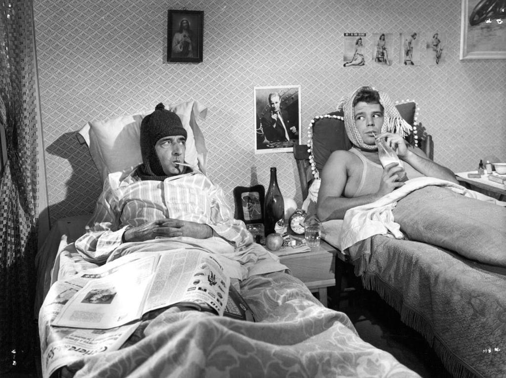 Sans pour autant complètement renier le contexte social, Pauvres millionnaires s’impose donc comme une réponse italienne à Billy Wilder, George Cukor et aux grosses comédies américaines de l’époque en général. Et pour que nul ne puisse se méprendre sur ses intentions, Dino Risi démarre son récit sur les chapeaux de roues, avec une première partie qui enchaine les quiproquos et les allées et venues comiques, sur un tempo littéralement fou. C’est bien sûr ici l’occasion pour Renato Salvatori de faire preuve de son impayable tempérament comique, que l’on avait cela dit déjà largement découvert lors de certaines séquences de Belles mais pauvres qui jouaient déjà ouvertement de la comédie de situation. Malgré ce virage assumé vers le burlesque à l’américaine, l’homogénéité de l’écriture est largement préservée par le tandem Massimo Franciosa / Pasquale Festa Campanile, deux scénaristes qui connaissent et aiment ces personnages qu’ils font évoluer depuis quelques années et quelques films.