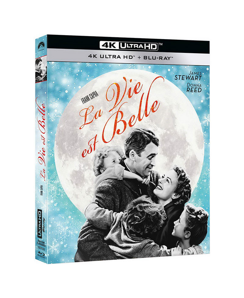 Bénéficiant d’une toute nouvelle remasterisation 4K, La vie est belle débarque ce mois-ci chez Paramount Pictures à la fois en Blu-ray et en Ultra HD Blu-ray 4K. Et on ne pourra se réjouir en voyant le résultat visuel de cette nouvelle édition Blu-ray. Le résultat à l’image est tout simplement magnifique, la restauration ayant été effectuée avec soin. Le niveau de détail est excellent, avec un piqué d’une précision inédite et une gestion des contrastes tout à fait remarquable. L’absence de filtrage superflu permet également à l’image de s’offrir une patine argentique respectée à la lettre, ce qui est toujours très agréable. Côté son, la VO mixée en Dolby TrueHD 2.0 (mono d’origine) est solide et équilibrée, qu’il s’agisse des dialogues ou de l’intégration des effets sonores, il n’y a vraiment rien à redire. La VF est quant à elle proposée en Dolby Digital 2.0 (mono d’origine), et peine forcément à retrouver l’excellence de la piste VO. L’ensemble est néanmoins satisfaisant, même si la bande-son est mixée un peu bas, et nécessite de monter un peu le son pour profiter pleinement du film.