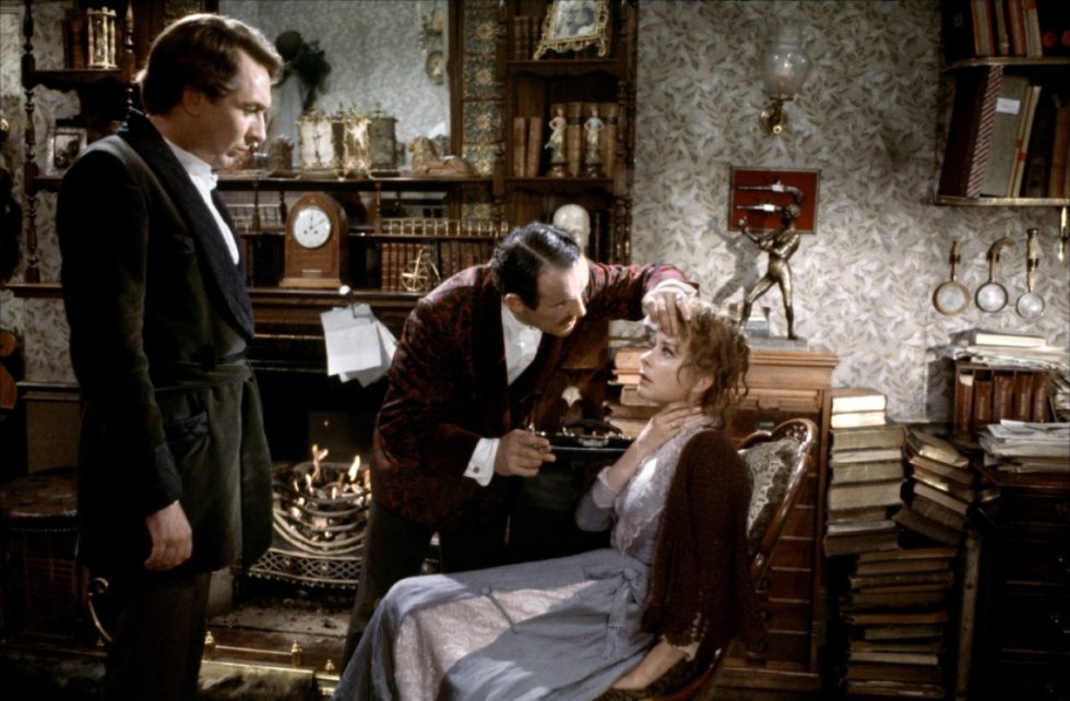 Concrétisation d’un travail de longue haleine pour Billy Wilder et son scénariste fétiche I.A.L. Diamond, La vie privée de Sherlock Holmes suit donc une enquête « inédite », créée de toutes pièces par les deux compères, inséparables depuis Ariane en 1957. Pour la petite histoire, on notera qu’à l’origine, en lieu et place des deux intrigues se superposant durant le film, c’était quatre histoires qui devaient s’enchevêtrer au cœur d’un film dont le premier montage durait rien de moins que quatre heures. Evitant la tentation du pastiche ou de la parodie, les auteurs du film proposent une « extension » sentimentale à l’univers créé par Conan Doyle, ayant pour elle de proposer ce qui apparait comme une parfaite cohérence avec l’œuvre littéraire mettant en scène Sherlock Holmes – Wilder et Diamond respectent au pied de la lettre « l’esprit » des romans. Bien sûr, on pourra toujours arguer que La vie privée de Sherlock Holmes démystifie le « héros », le fait tomber de son piédestal de détective infaillible ; mais le film parvient surtout à apporter une réelle dimension « humaine » au personnage, dont on découvre ici les failles, les défauts et les faiblesses. Dès les premières minutes du film, Holmes fait remarquer à Watson que l’image que ce dernier a forgée de lui au fil de ses récits est fausse – Billy Wilder et IAL Diamond s’échineront à donner une dimension humaine à ces personnages de fiction, de même qu’ils les replaceront au cœur d’une reconstitution historique très soignée.
