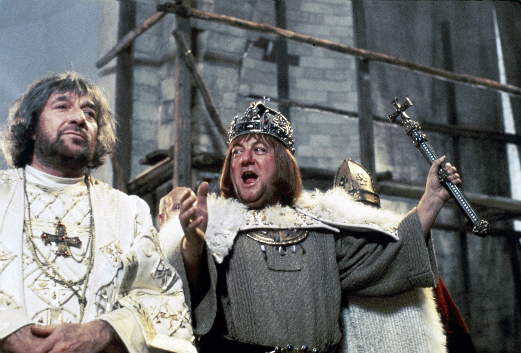 Si à la base, le scénario du Bon roi Dagobert signé Gérard Brach était, parait-il, un modèle de rigueur historique, le film de Dino Risi sorti sur les écrans français durant l’été 1984 ne rend pas forcément justice aux recherches méticuleuses menées par le scénariste sur les Rois Fainéants et leur époque. Le film s’avère en effet littéralement « vampirisé » par la personnalité de Coluche, qui signe ici le portrait d’un roi pleutre et assez répugnant ; le franc-parler qu’il utilise, principalement au détour de deux/trois monologues riches en savoureuses saillies anticléricales, respire la bonne vieille « sagesse populaire » – euphémisme généralement d’usage quand on évoque ce bon vieux populisme des familles. Ainsi, de la rigueur historique du script d’origine, Risi ne retiendra au final que les aspects les plus obscènes et peu ragoutants.