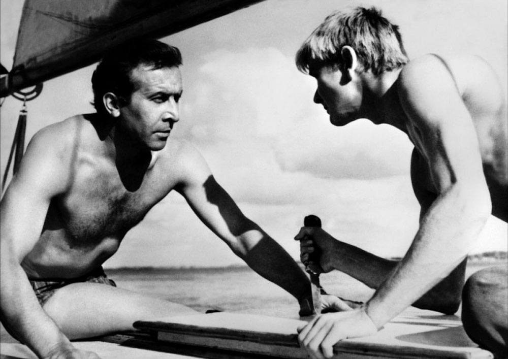 Trois acteurs, un bateau. Un couteau, des mikado, quelques bouteilles. Une histoire ? Oui et non, car il ne se passe pas grand-chose au fond dans Le couteau dans l’eau. Pourtant, le premier long-métrage de Roman Polanski parvient à tenir le spectateur en haleine sur sa durée, grâce à l’atmosphère trouble, suffocante, qu’il entretient autour de son triangle de personnages. Le tour de force le plus impressionnant de Polanski sur ce film est sans doute liée à cette atmosphère étouffante, qu’il crée et entretient tout au long du film, alors même que paradoxalement, celui-ci se déroule à ciel ouvert, sur un bateau, sous un grand soleil, avec de l’eau à perte de vue. Un huis-clos dans un monde ouvert, et sur un voilier, éternel synonyme de liberté dans la société occidentale.