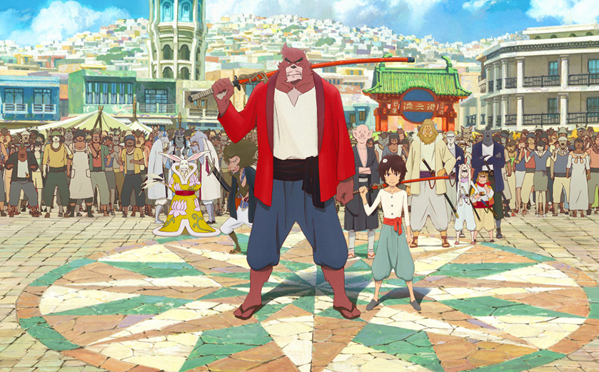 Quelques années après Ame et Yuki – Les enfants loups, voici donc le nouveau –et très attendu– film de Mamoru Hosoda. On y retrouvera naturellement l’esthétique sublime et les thèmes chers au cinéaste (filiation, sauvagerie, éducation) : très influencé par les mythes et légendes du folklore japonais (les kami, yokaï et autres animaux surnaturels), Le garçon et la bête met en scène deux mondes parallèles, qui s’opposent et se rejoignent : d’un côté la société des « bêtes », de l’autre la mégalopole Tokyoïte ultra-moderne, où vivent les hommes. Laquelle des deux est à votre avis la plus « humaine » ? Les bêtes évidemment, vivant en paix sous l’égide bienveillante d’un sage lapin en passe de devenir une divinité.