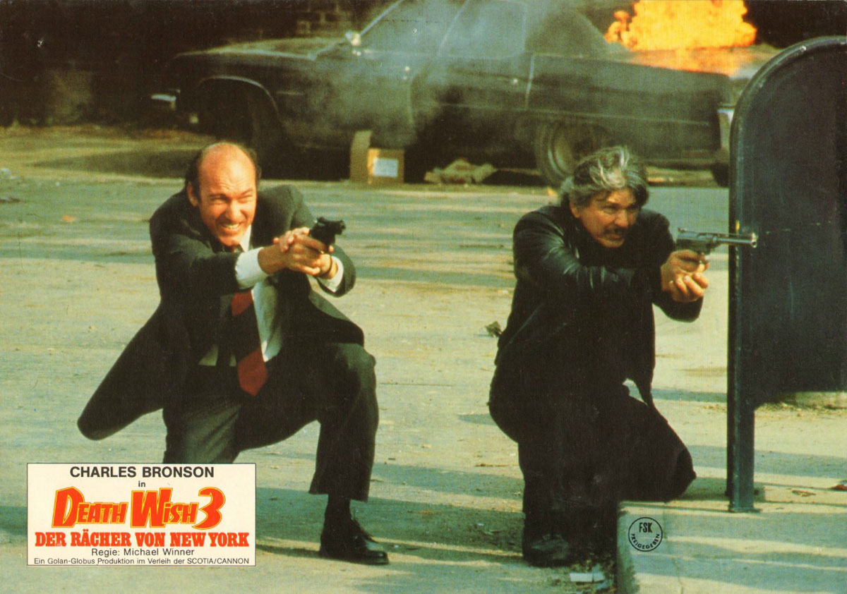 Mais sous l’impulsion de cette race nouvelle de « vigilante movies », les papys flingueurs Charles Bronson et Michael Winner reprennent donc du service en duo avec Le justicier de New York, retitré Un justicier dans la ville 3 pour cette édition Blu-ray sous les couleurs de Sidonis Calysta. Le justicier de New York ressuscitait donc à nouveau la franchise, près de trois ans après le deuxième Justicier. Et en 1985, on ne déconne plus avec le crime : de retour à New York, Papy Bronson, 64 ans, se verra carrément missionné / légitimé par un commissaire de police afin de nettoyer une banlieue sensible. S’il commencera tranquilou au flingue de chasse ou au fusil d’assaut, il finira le boulot au lance-missile, présentant le topo à ses voisins avec autant de calme et de détachement que s’il leur exposait les caractéristiques de son nouveau taille-haies.