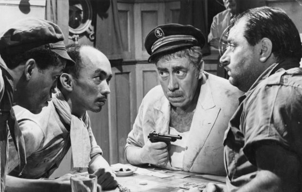 Six rôles différents donc, et très différents les uns des autres pourra-t-on même ajouter. Suivant linéairement une intrigue d’héritage, Le mouton à 5 pattes passera donc d’un « frère » à un autre, chaque personnage animant un film conçu comme une suite de sketches, forcément inégaux, dont on retiendra surtout, presque soixante-dix ans plus tard, l’épatant passage de la « mouche » faisant suite à la partie de cartes prenant place sur le bateau. Pour le reste, Verneuil et ses scénaristes (Henri Troyat, René Barjavel…) laissent le champ libre au génie comique de Fernandel et de quelques excellents seconds-rôles – Louis de Funès surtout – dans un festival de gags tantôt franchement désuets, tantôt étonnamment modernes dans leur tonalité ou dans leur registre « méta » (on pense ici à la référence explicite au personnage de Don Camillo).