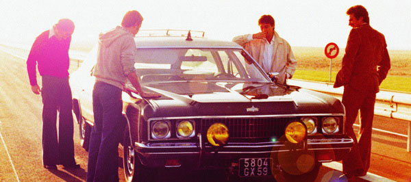 Le plein de super est de ceux-ci. Film choral, tenant autant du road-movie que de la chronique de mœurs très ancrée 70’s, le film met en scène une bande d’amis inséparables, à l’écran comme à la ville : tous ont d’ailleurs mis la main à la pâte concernant le scénario, sans querelles d’ego, et au final, Le plein de super s’impose véritablement comme un film plein d’humour et de dynamisme, donnant une impression de captation « sur le vif », et rythmé par des dialogues et échanges littéralement irrésistibles entre les quatre acteurs principaux (Patrick Bouchitey, Étienne Chicot, Bernard Crombey et Xavier Saint-Macary). De fait, il est vite difficile de discerner la frontière, forcément très ténue, entre la fiction et la réalité, et le long-métrage de s’imposer rapidement comme une véritable « tranche de vie », un pur moment de réalité capté sur celluloïd.