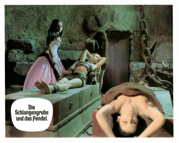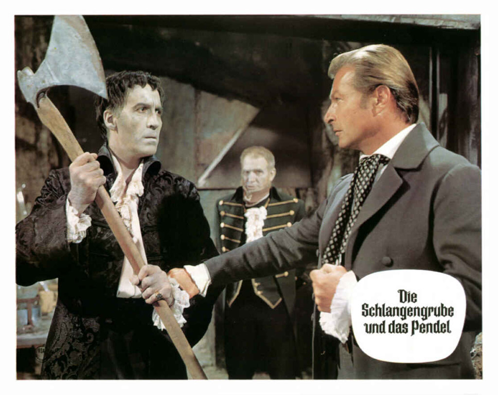 Le Vampire et le sang des vierges est donc un pur film d’épouvante gothique réalisé par Harald Reinl, ayant la particularité d’avoir été produit et tourné en Allemagne, et ce même s’il s’inscrit dans la tradition des grands films de la Hammer ou du cycle d’adaptations d’Edgar Allan Poe réalisées par Roger Corman entre 1960 et 1964. La filiation est d’autant plus manifeste que le film de Reinl est également une adaptation (très libre) de la nouvelle d’Edgar Allan Poe « Le Puits et le pendule ». Et si vous aviez encore un doute, la présence au générique de Christopher Lee devrait terminer de rendre cette curiosité filmique absolument incontournable pour les amateurs du cinéma d’horreur des années 60…