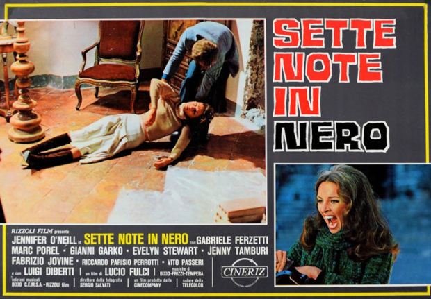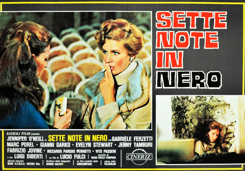 Giallo ou pas, retour à L’emmurée vivante. Voilà un titre français pour le moins pragmatique, me direz-vous. Ce dernier s’avère certes nettement moins poétique le titre original, Sette note in nero (littéralement « Sept notes en noir »), on ne pourra pas reprocher au distributeur français de l’époque de ne pas avoir compris le film. En effet, les deux titres font référence à la même séquence, et on est loin d’un retitrage français incompréhensible tel que La longue nuit de l’exorcisme, dans lequel il n’y a ni nuit, ni exorcisme (ni longue d’ailleurs). Par ailleurs, le titre français établit en quelque sorte une filiation entre le film de Fulci et l’œuvre d’Edgar Allan Poe. On pense naturellement à des nouvelles telles que « L’inhumation prématurée » ou « La barrique d’amontillado », qui mettent en scène des enterrés vivants. Sans en révéler trop sur le film, la dernière minute de L’emmurée vivante évoquera quant à elle « Le cœur révélateur ».